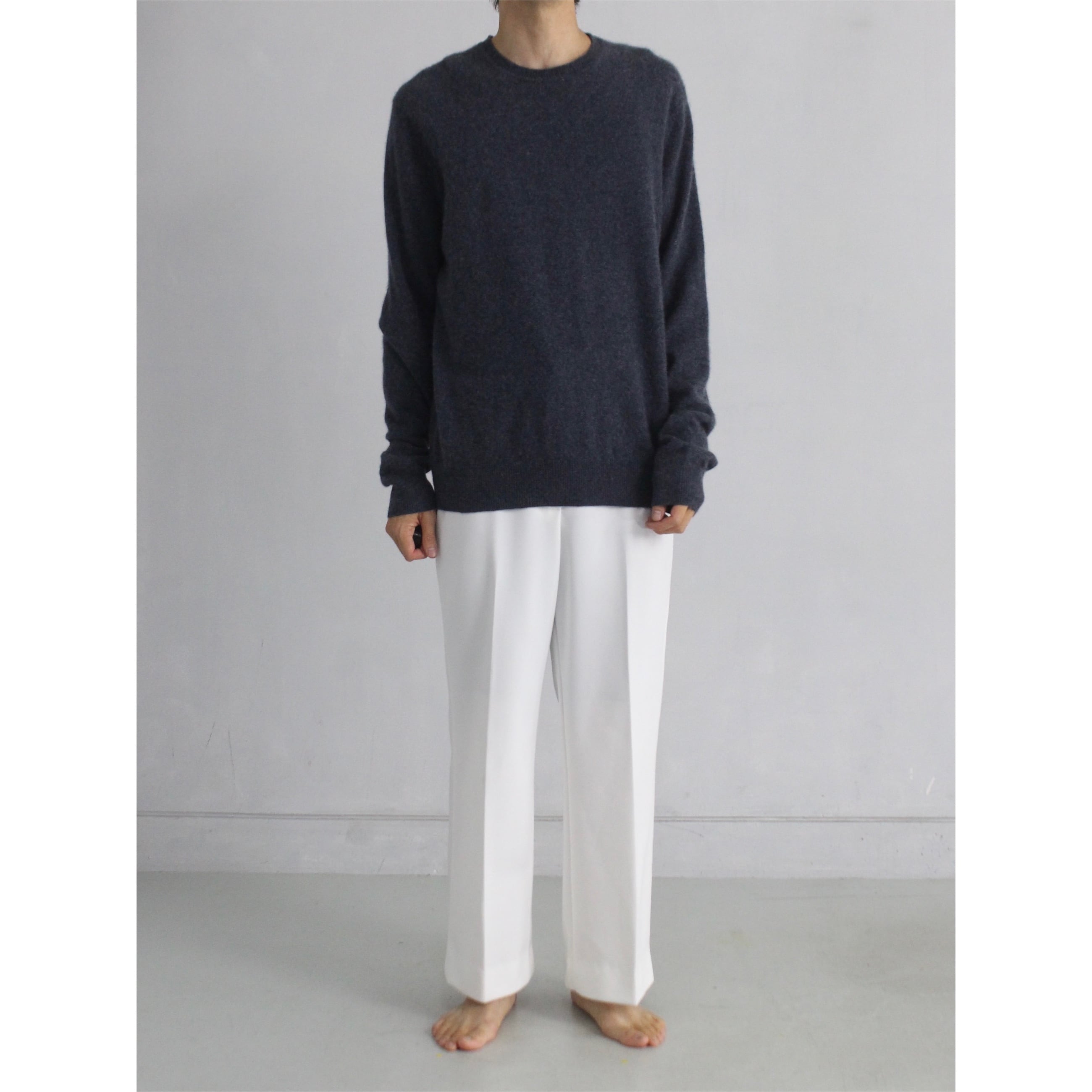 上品なくすんだネイビーカラーに意外と見つかりにくいクルーネック仕様。