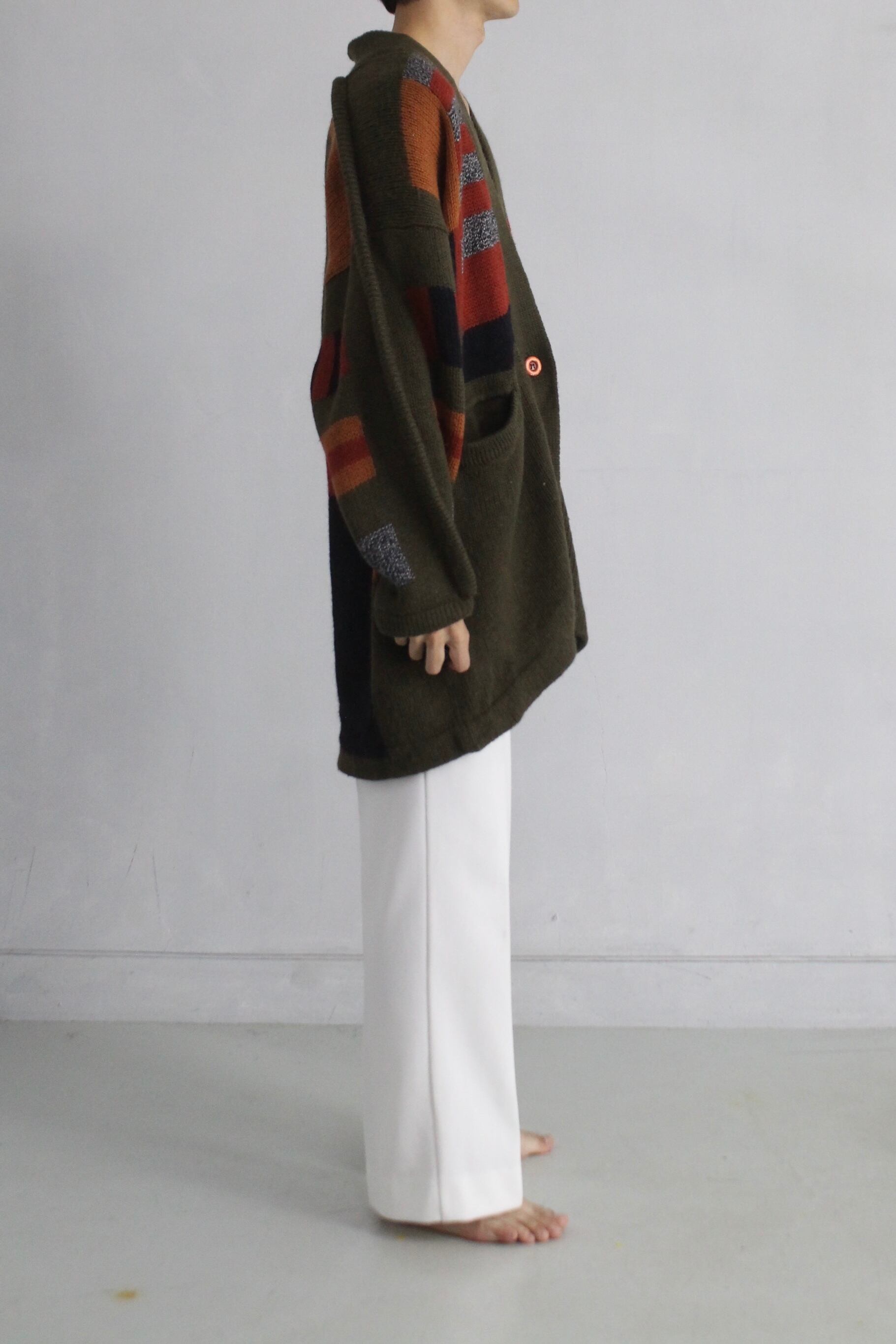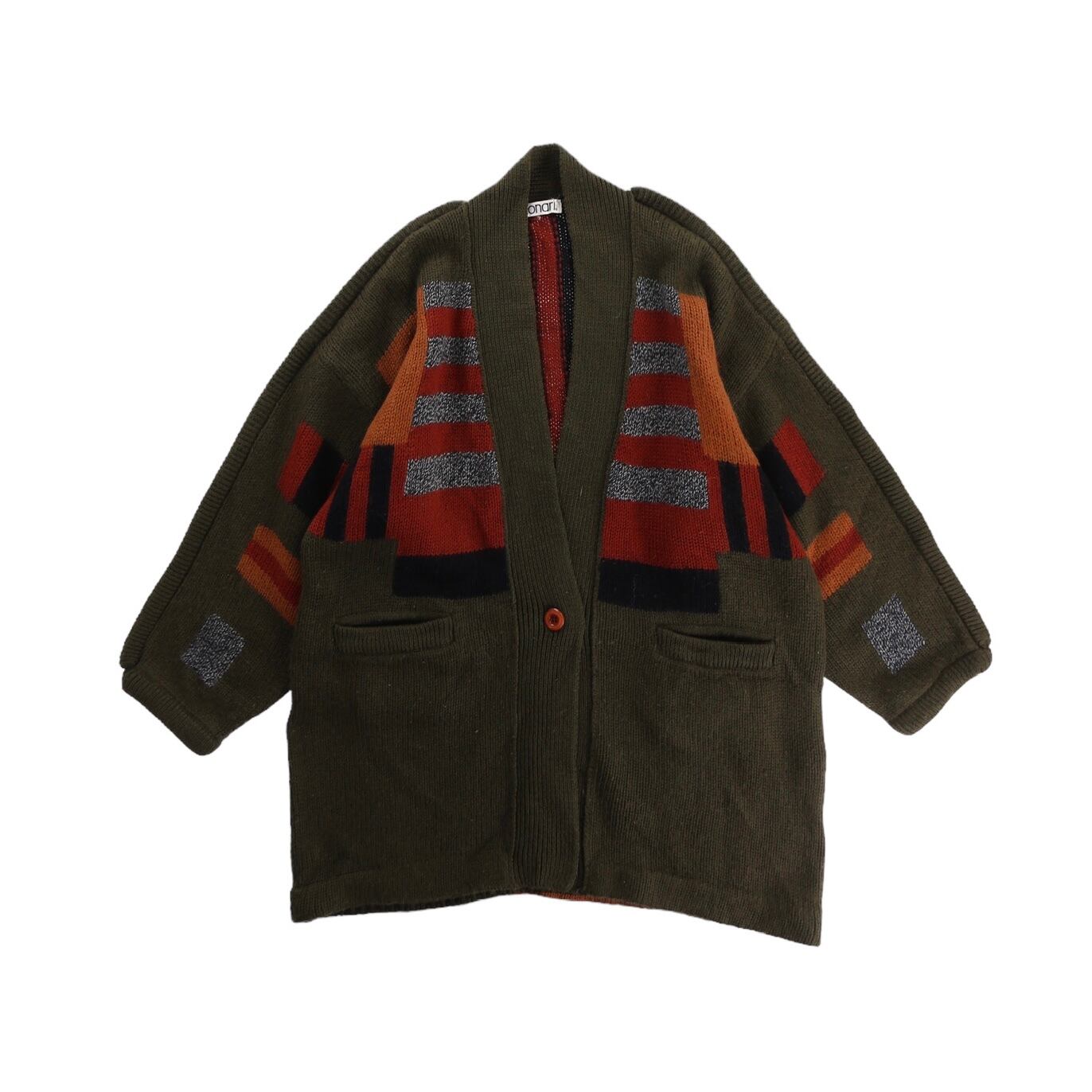【OTSU】1990's ethnic pattern design knit cardigan -8820-