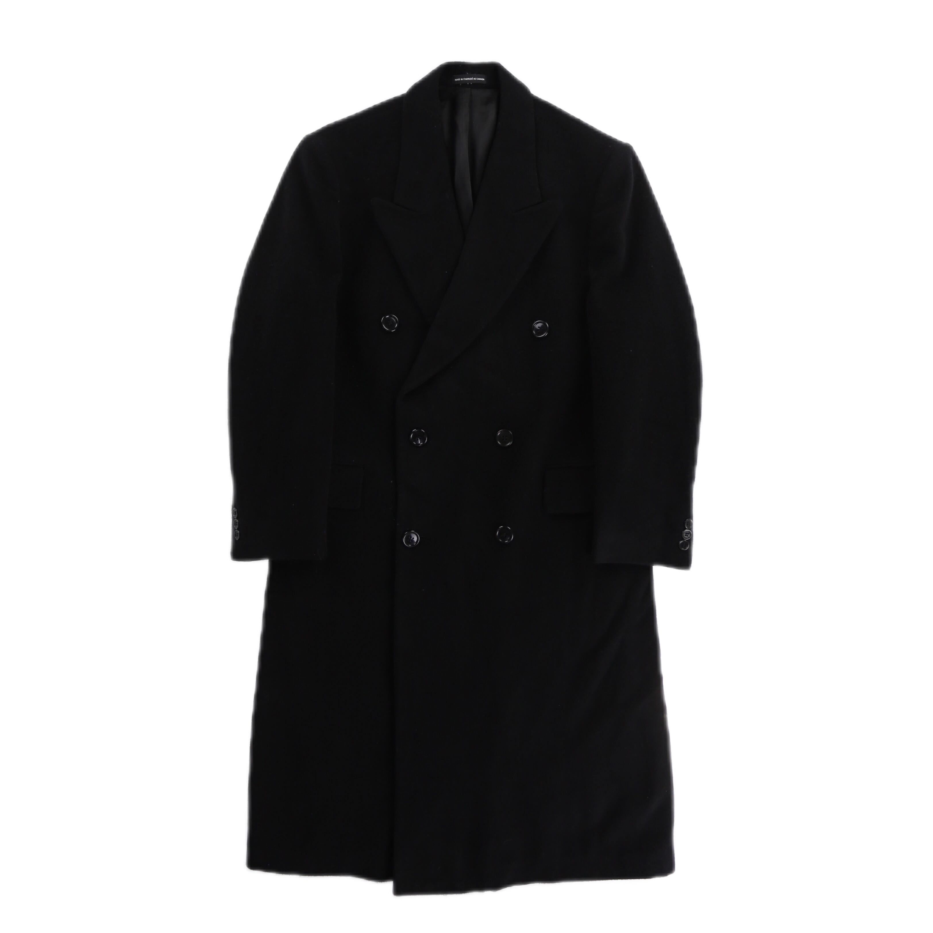 肩がしっかり作られており着た時にも肩に落ち感なく綺麗なシルエットで着ることが可能です。ストレスの無い軽い着心地に,なだらかに落ちる綺麗なドレープを楽しんでいただけるファブリック。クラシカルなダブルチェスター仕様で非常に大人な1着。