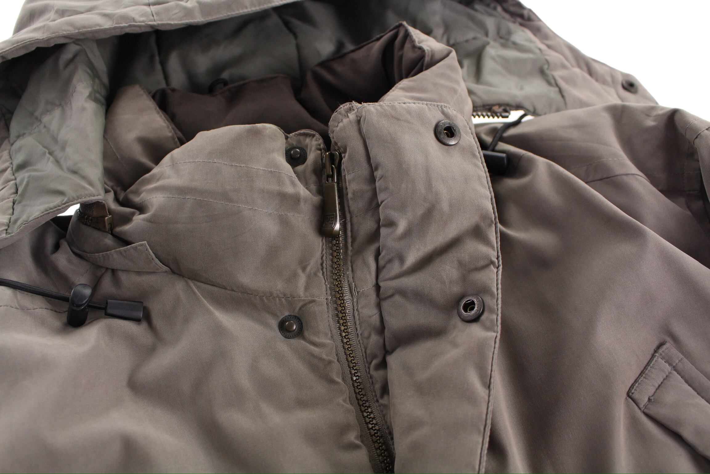 フロントジップアップ&スナップボタンの二重構造。着脱可能な大きめフードに加え,腰部分のドローコード。両サイドにはハンドウォームポケット+フラップポケット完備。ダウン特有の節目が表地にないのも魅力的。機能性,デザイン性共に頭ひとつ抜けたダウンジャケットかと。