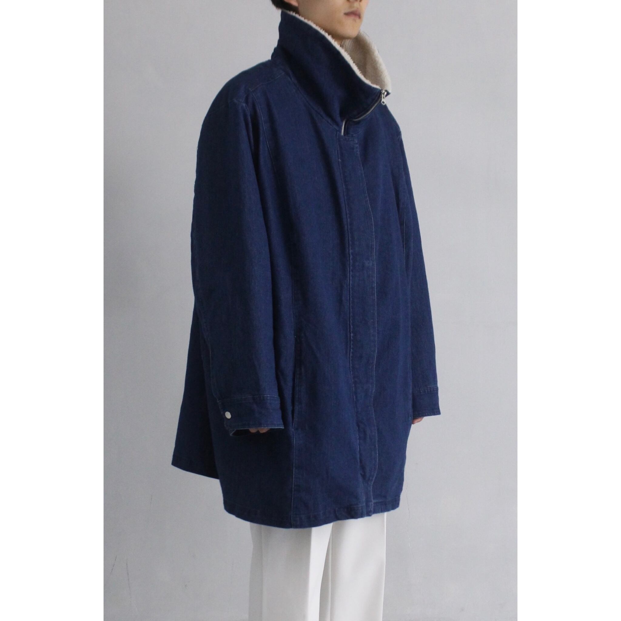 【COU】oversized high neck boa collar denim jacket with detachable liner -4129-