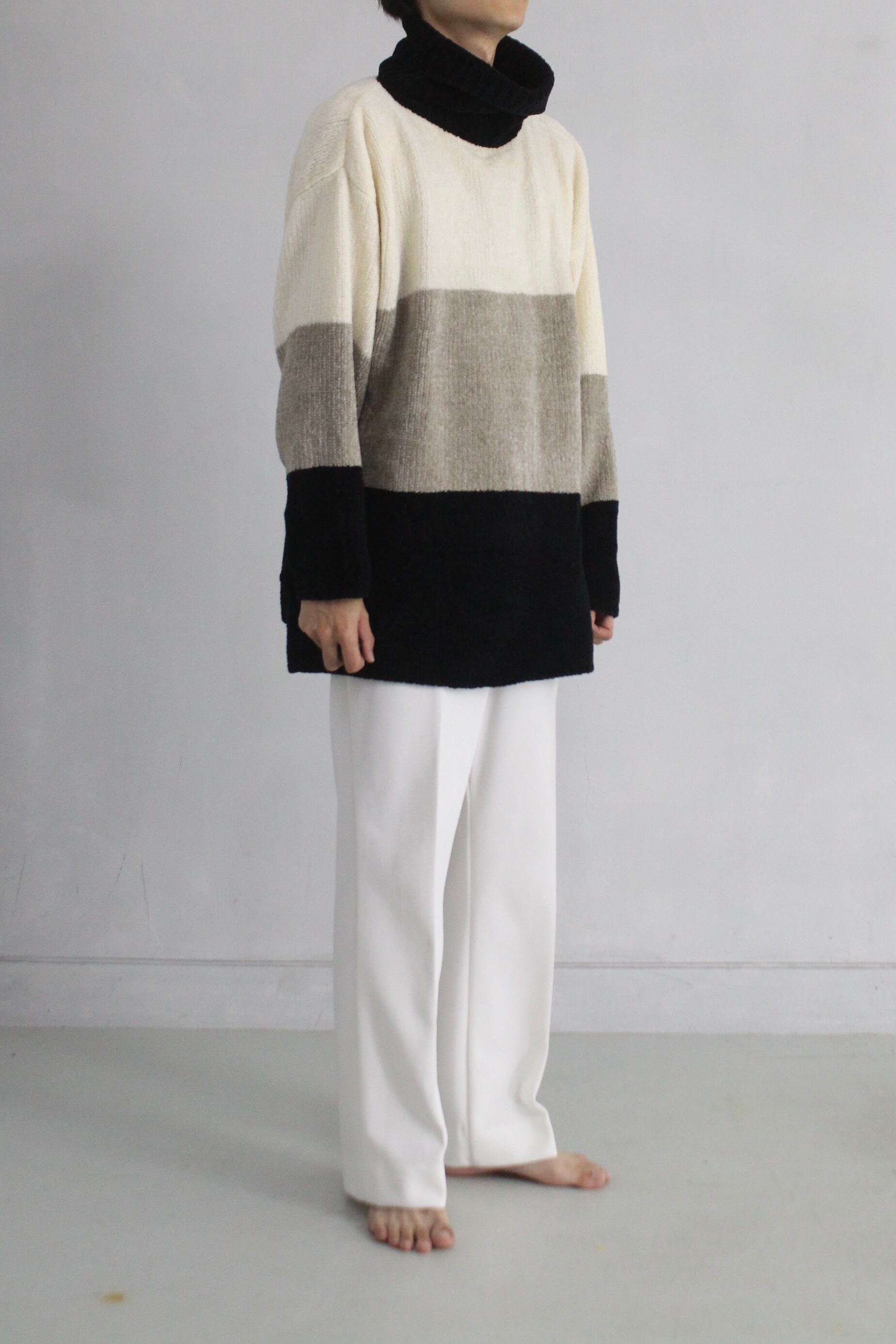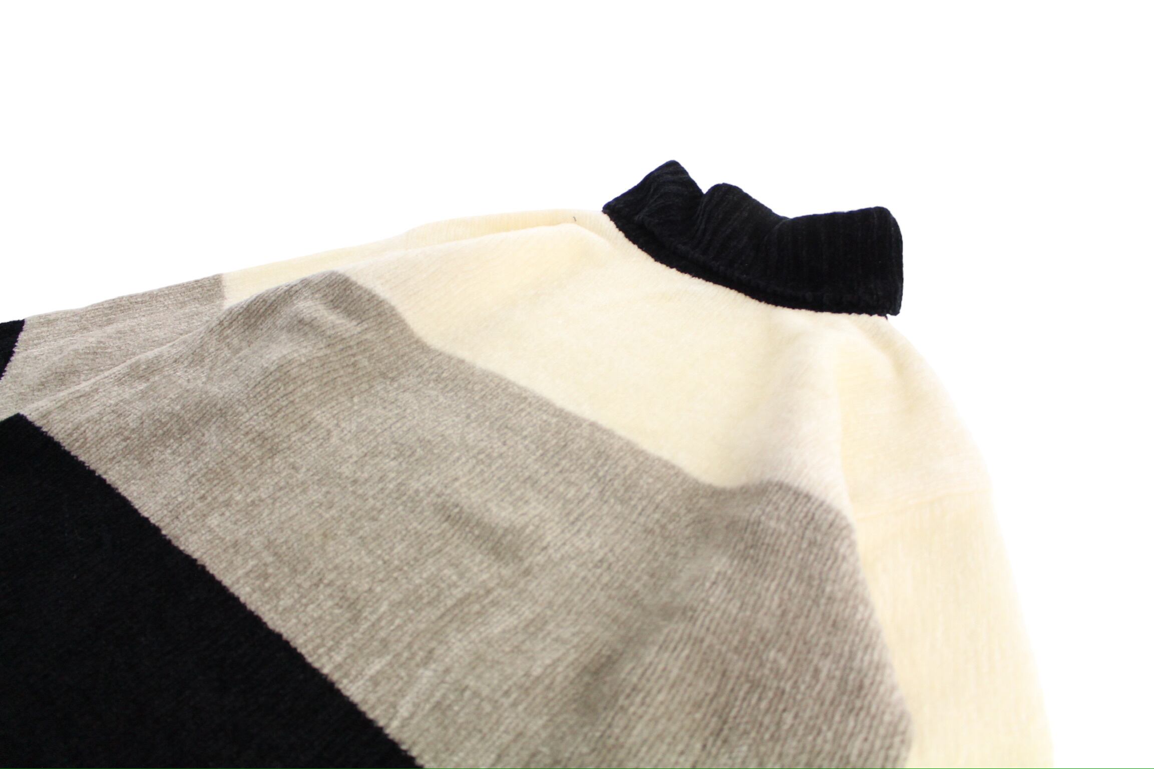 【OTSU】velour fabric 3-tone color turtle neck knit sweater -8919-