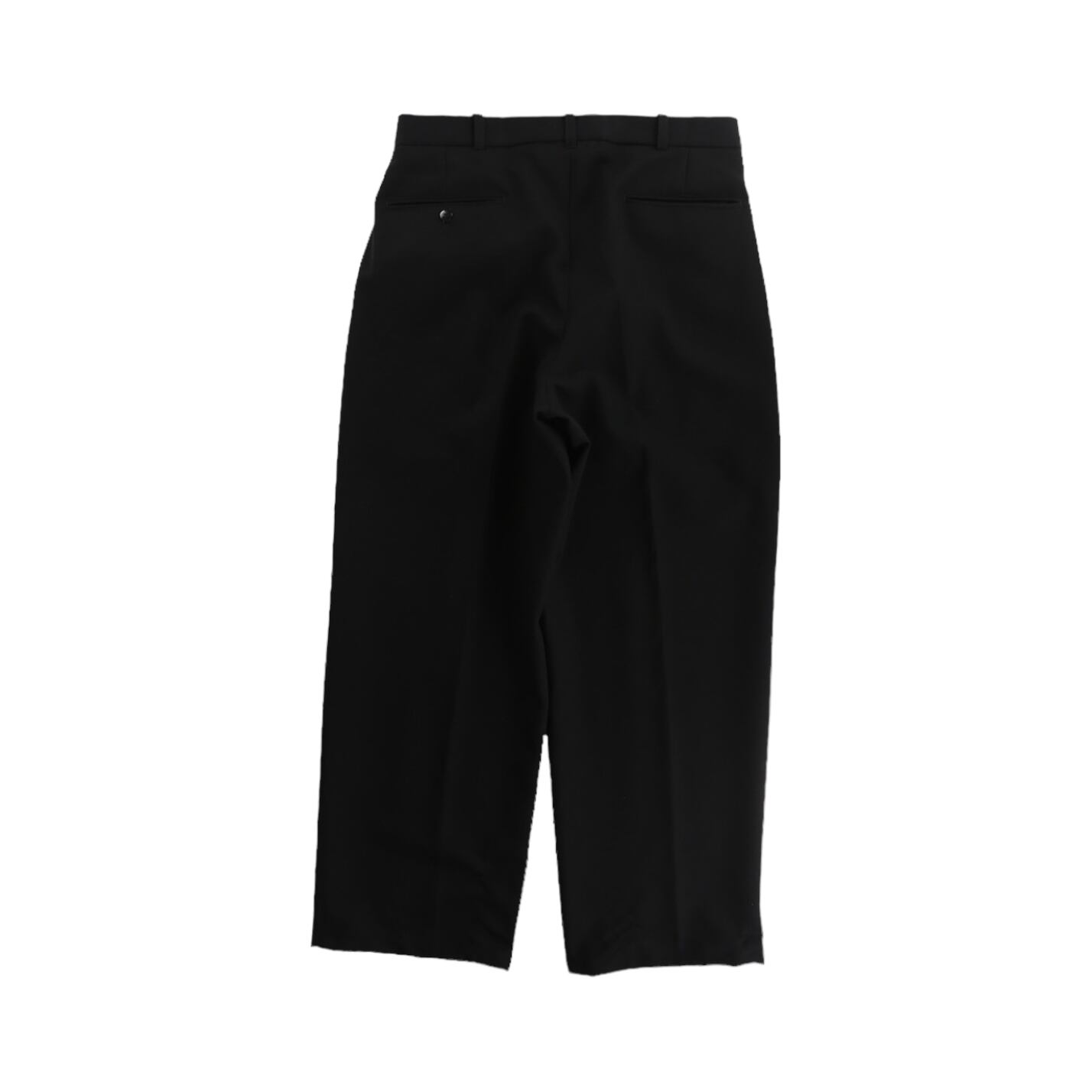 ワイドでシルエットもほぼストレートで履けるパンツなので着用した時の形がとても美しく、ポリ素材の滑らかさも感じる一本。