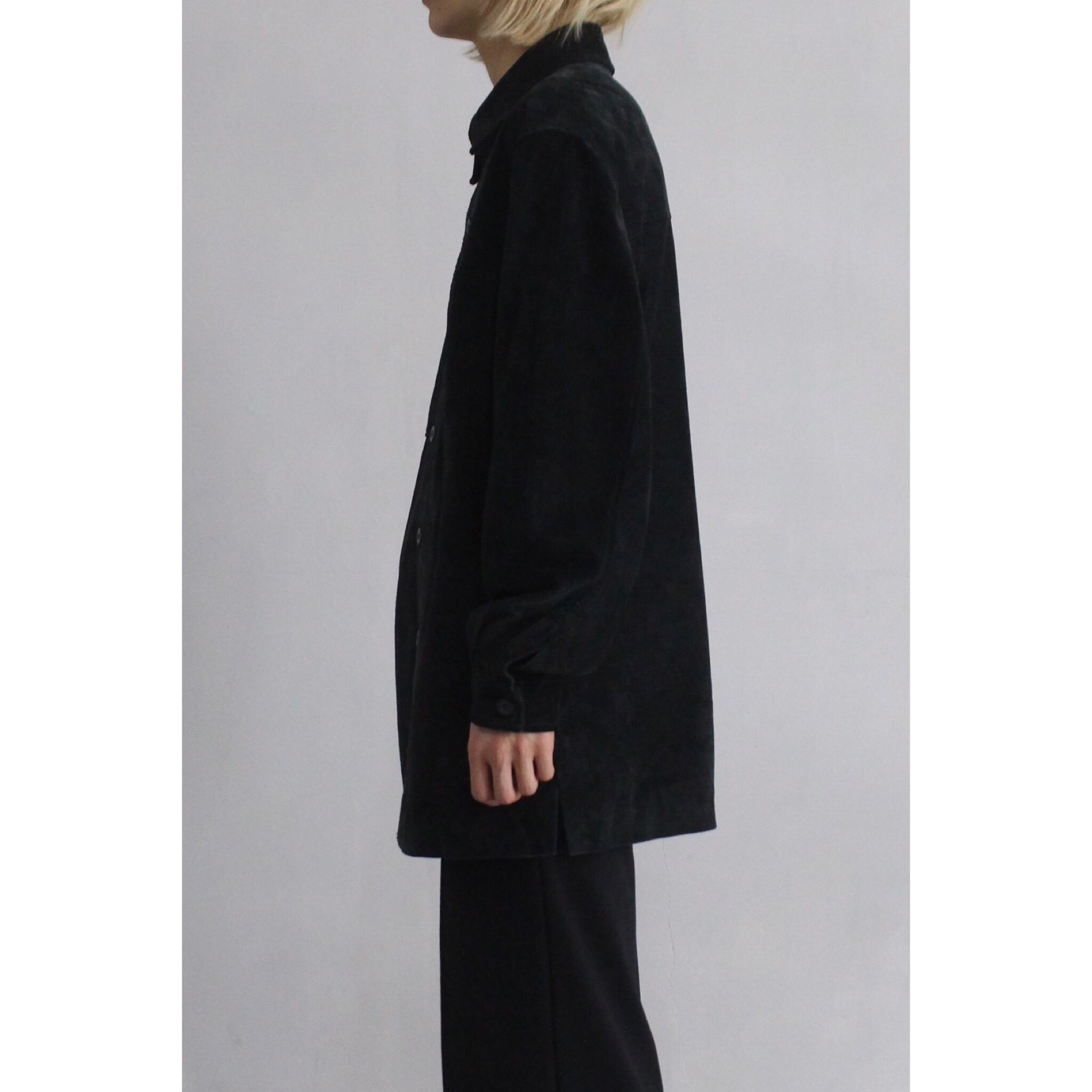 【FIFTY-FIFTY】1990s vintage ST JOHNS' BAY black colour real suède leather shirt -8392-