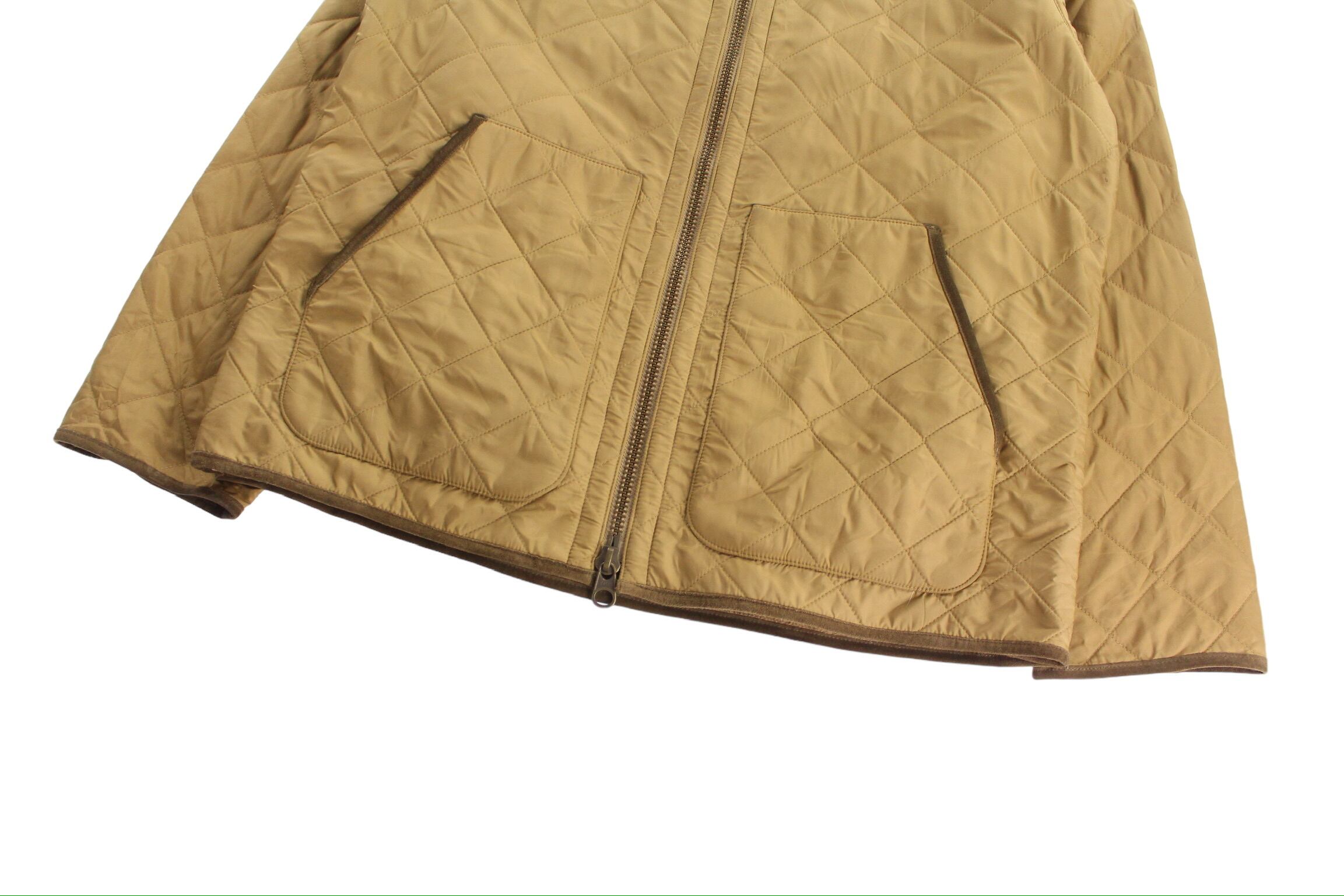 ナイロンのようなしっとりと柔らかいポリエステルの生地。アームと襟にはほんのり中綿入りで保温性もあり寒い今時期にぴったりなアイテム。がっつり中綿が入るタイプではないのでボリューム感も少ない着心地なので着用時の落ち感も堪らず◎加えて非常に軽量化されたキルティングジャケット。重くなりがちな冬のアウターが多い中でこれは嬉しいです☺︎