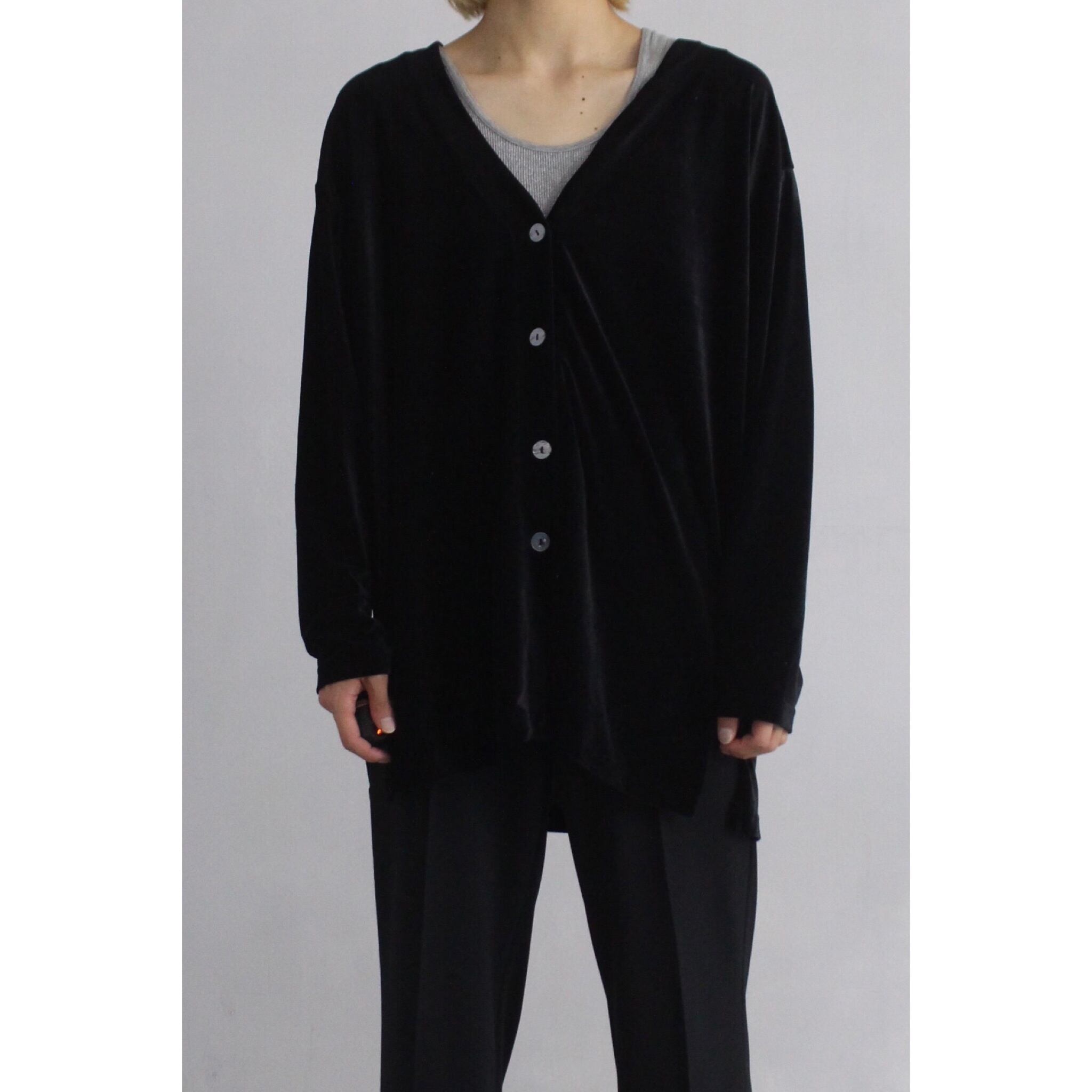 【FIFTY-FIFTY】loose silhouette black colour velours cardigan -8314-