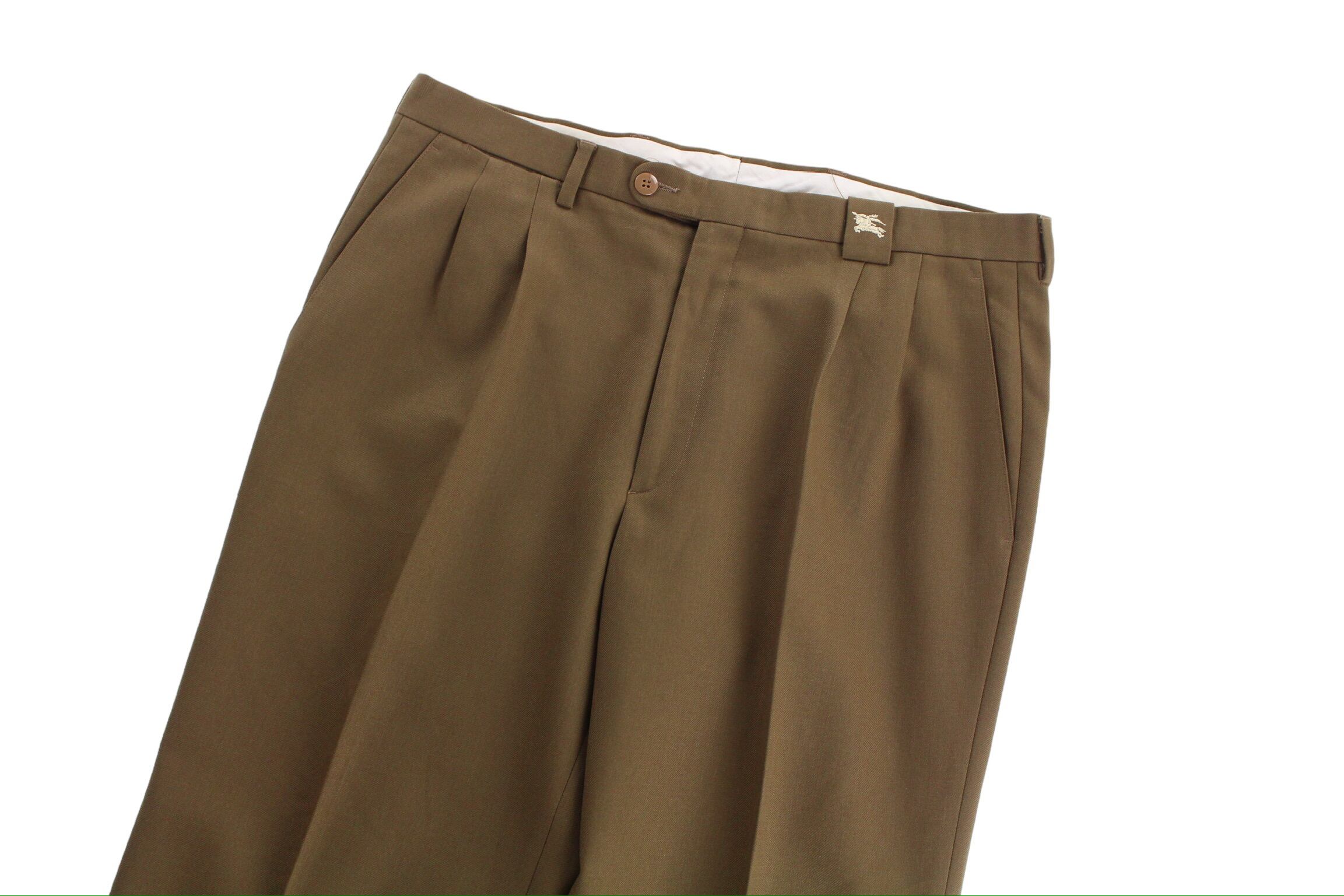 生地感もウール×ポリエステルのオールシーズン対応型。ストレスのないさらっとした着心地でほんのり肉厚でとろみのある生地感も履くと虜になること間違いなし。Burberry得意のギャバジン織で耐久性も抜群。