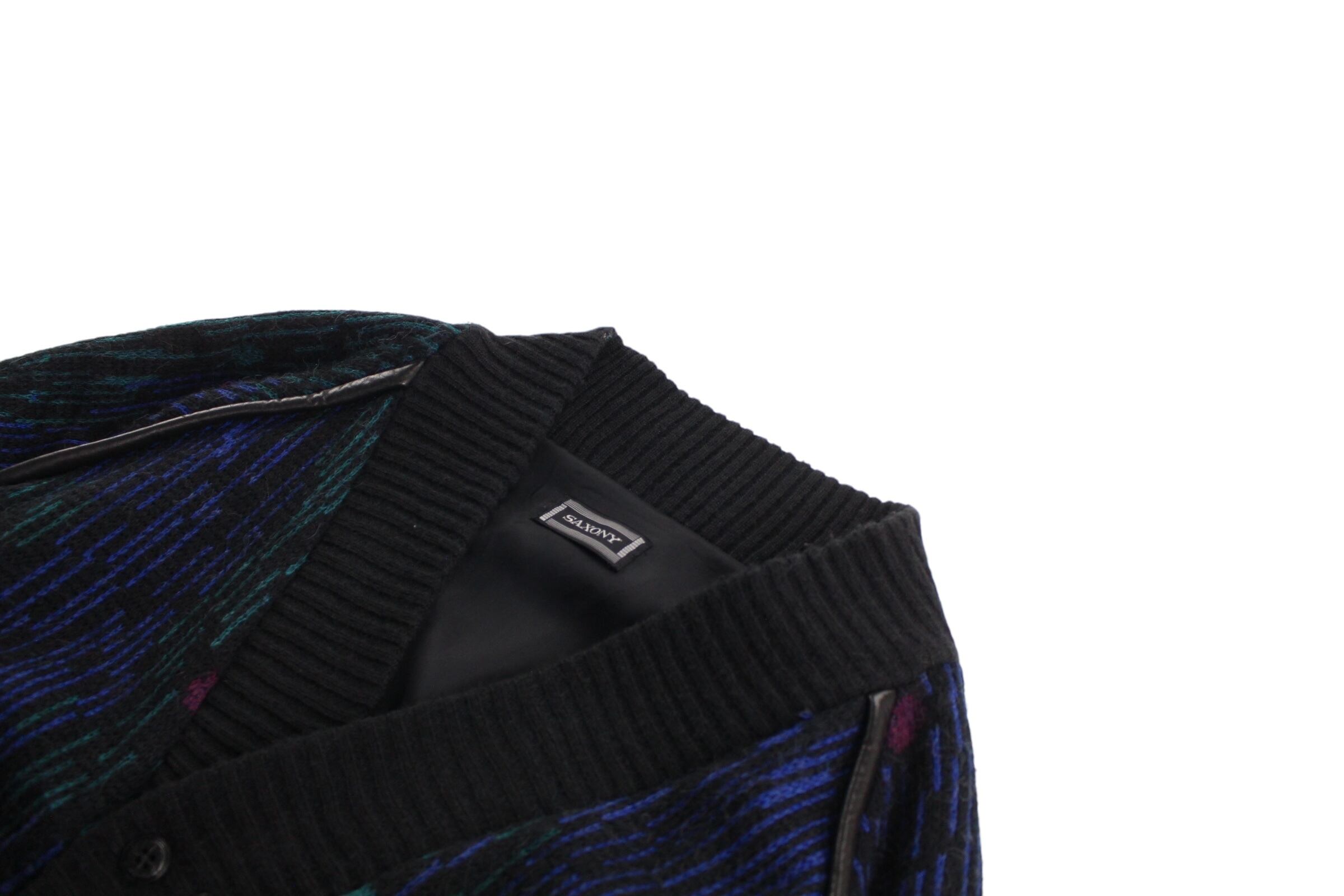 【OTSU】1990's lamb leather swiching design knit cardigan -11919-