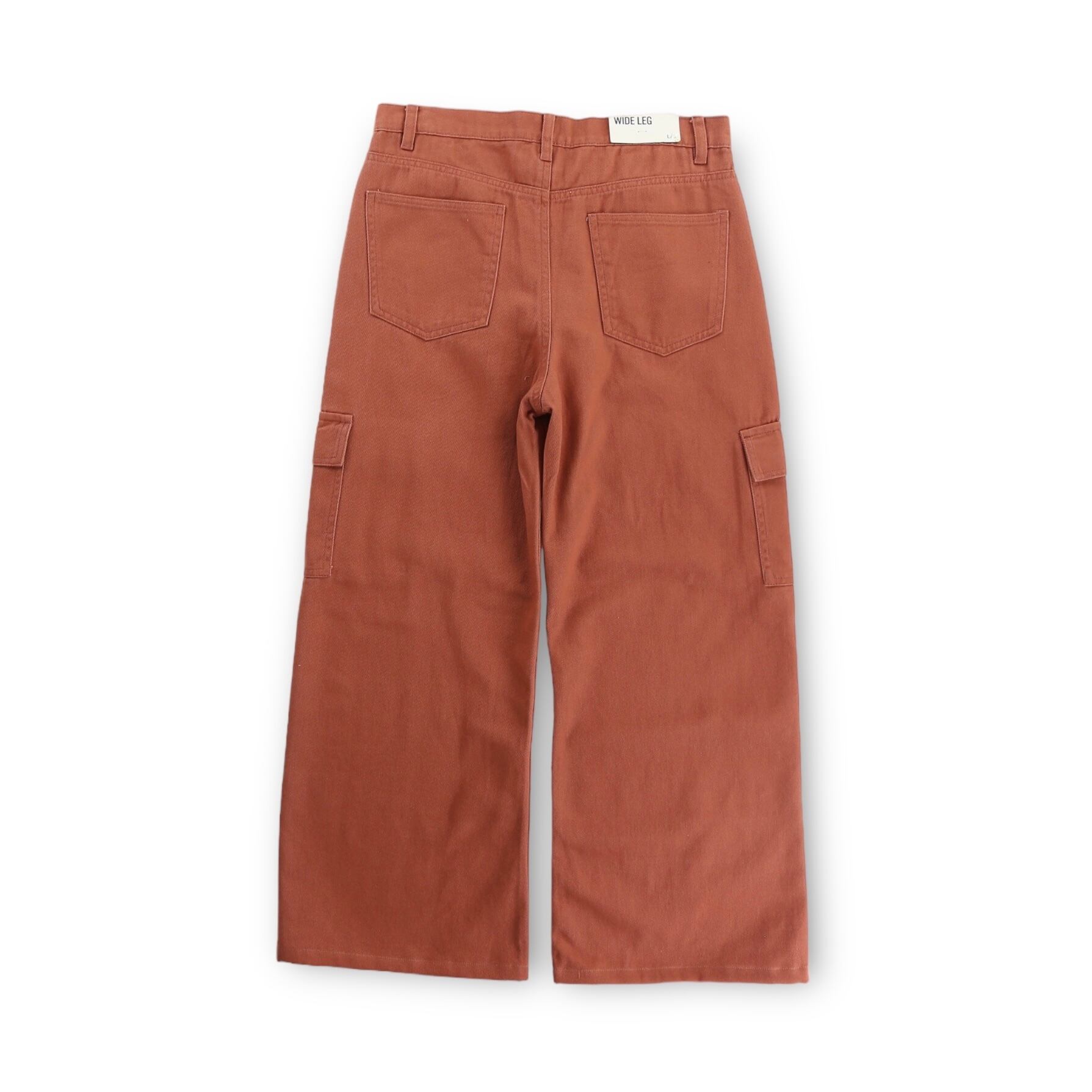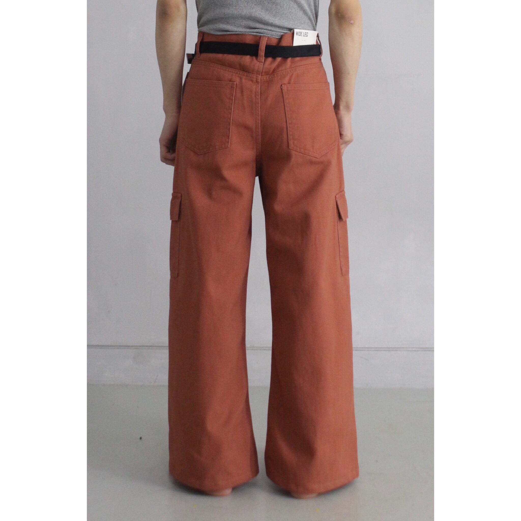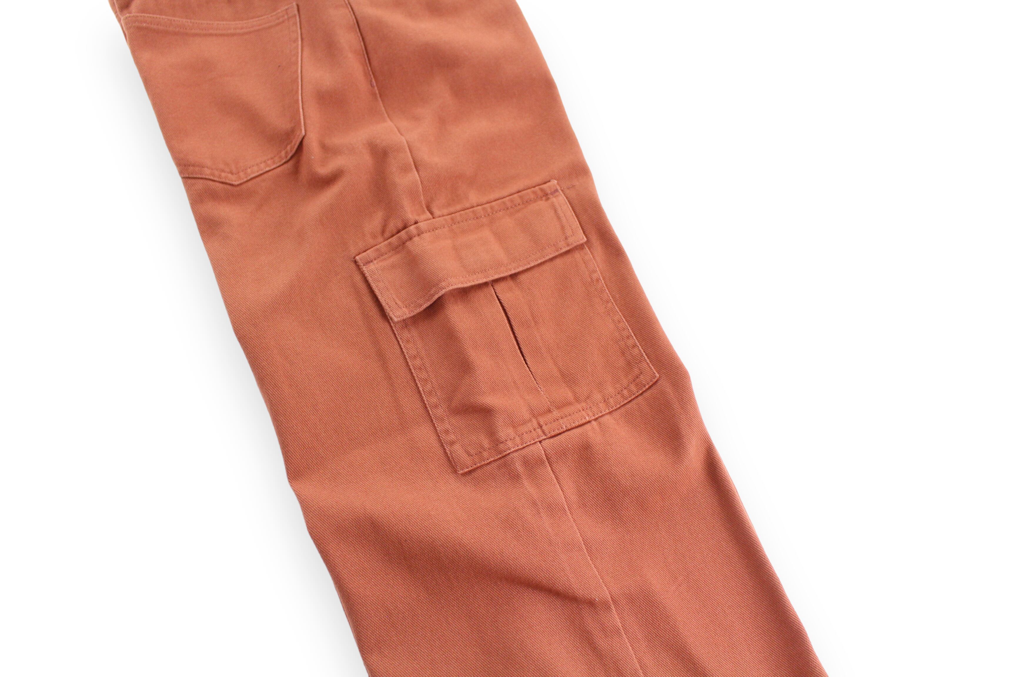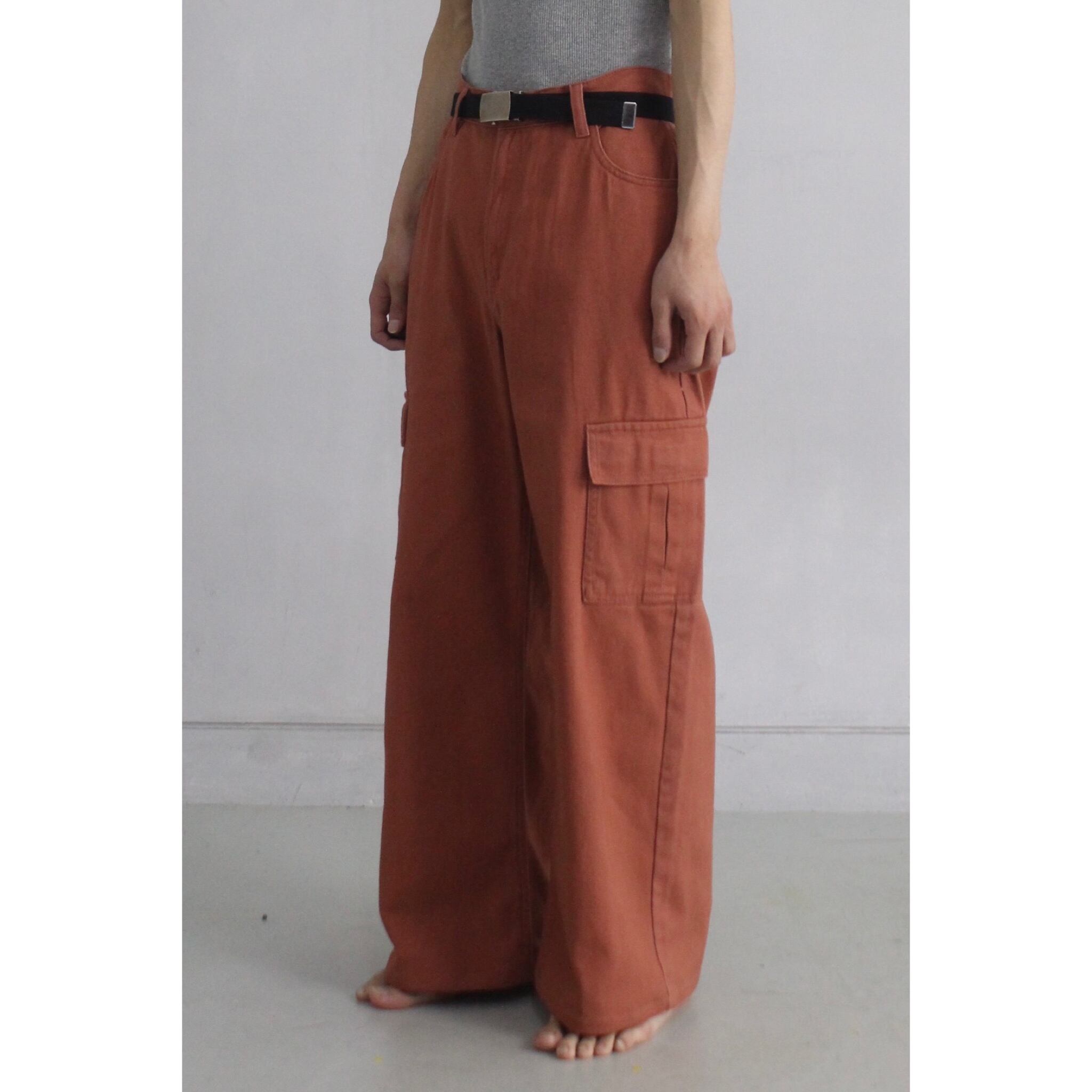 【COU】deadstock coral orange color wide denim cargo pants -4191-
