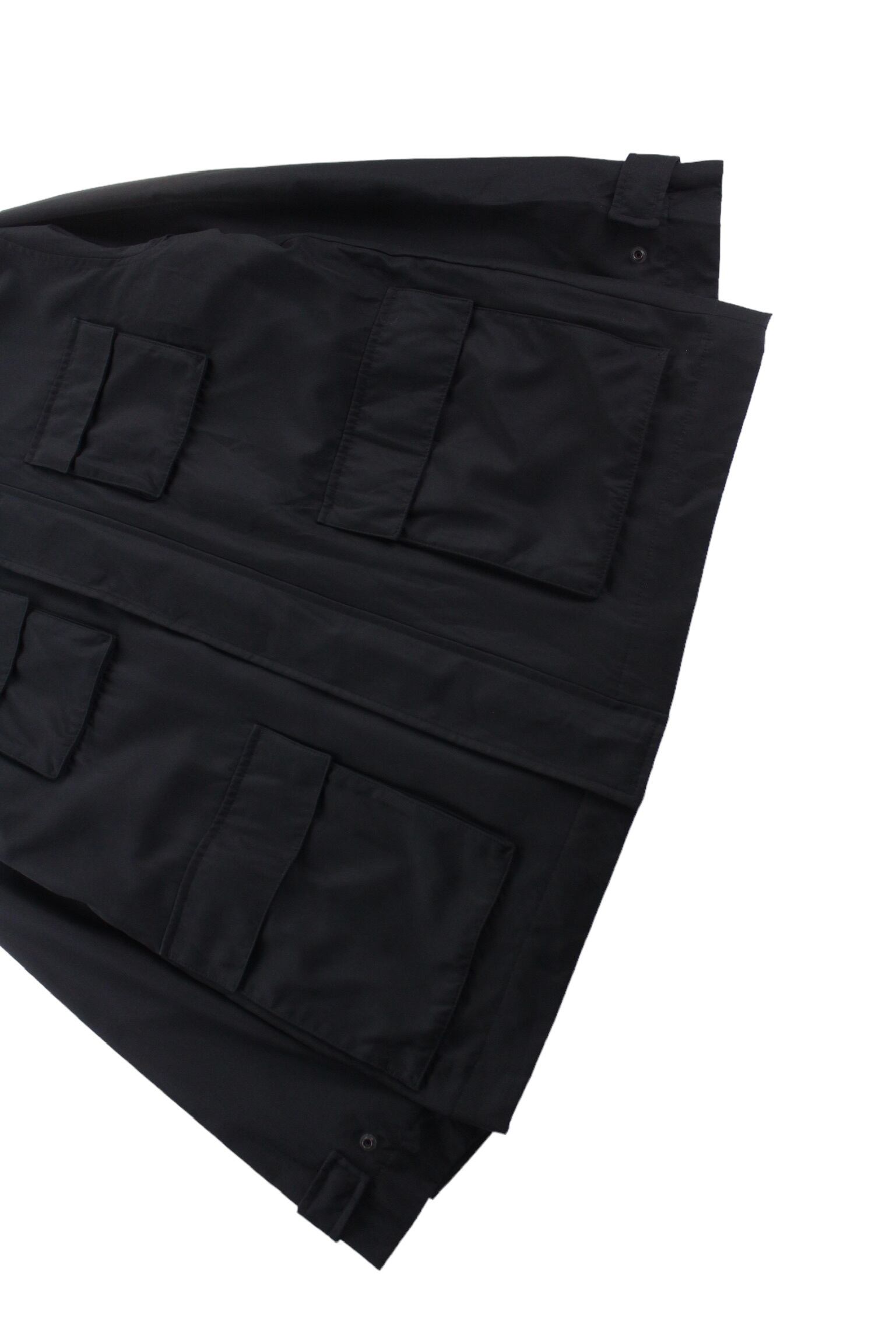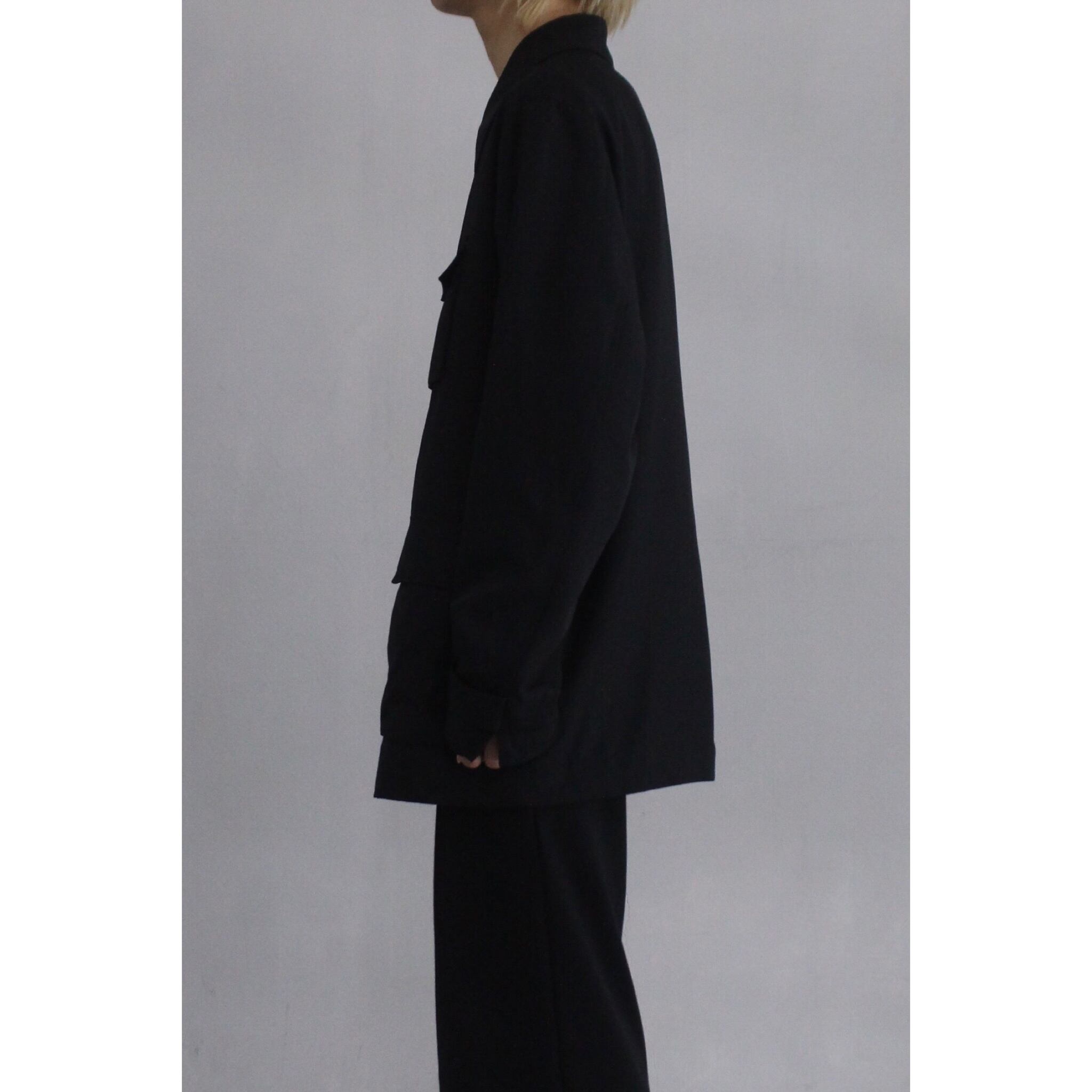 大きめのフラップポケットが4個ついており,収納力が高い。手ぶらでの活動にも最適です。スナップボタン×ジップの二重構造で比翼仕様。オリジナルではコットンが採用されておりますが,こちらはとろみポリの現代にマッチした素晴らしいファブリック。
