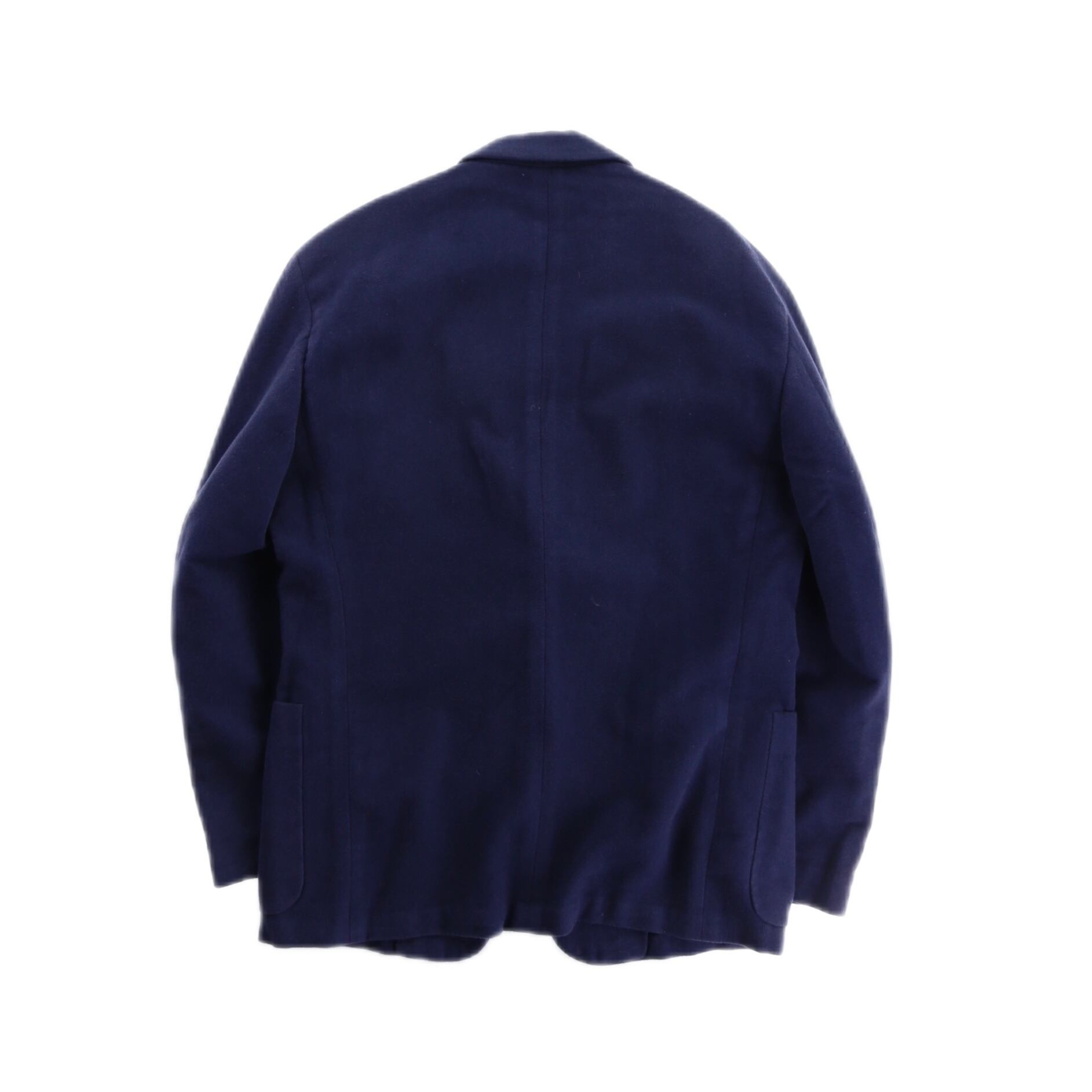 フロントは2ボタン仕様なクラシカルなシングル仕様。肩パッドレスな所謂アンコン仕様な肩、くびれのないウエスト、背抜き仕様なさらっと気負わずに羽織るテーラードです。着ていてとても楽ですし、どことなく余裕のある佇まいが流石なブランドが作るアンコンジャケット。