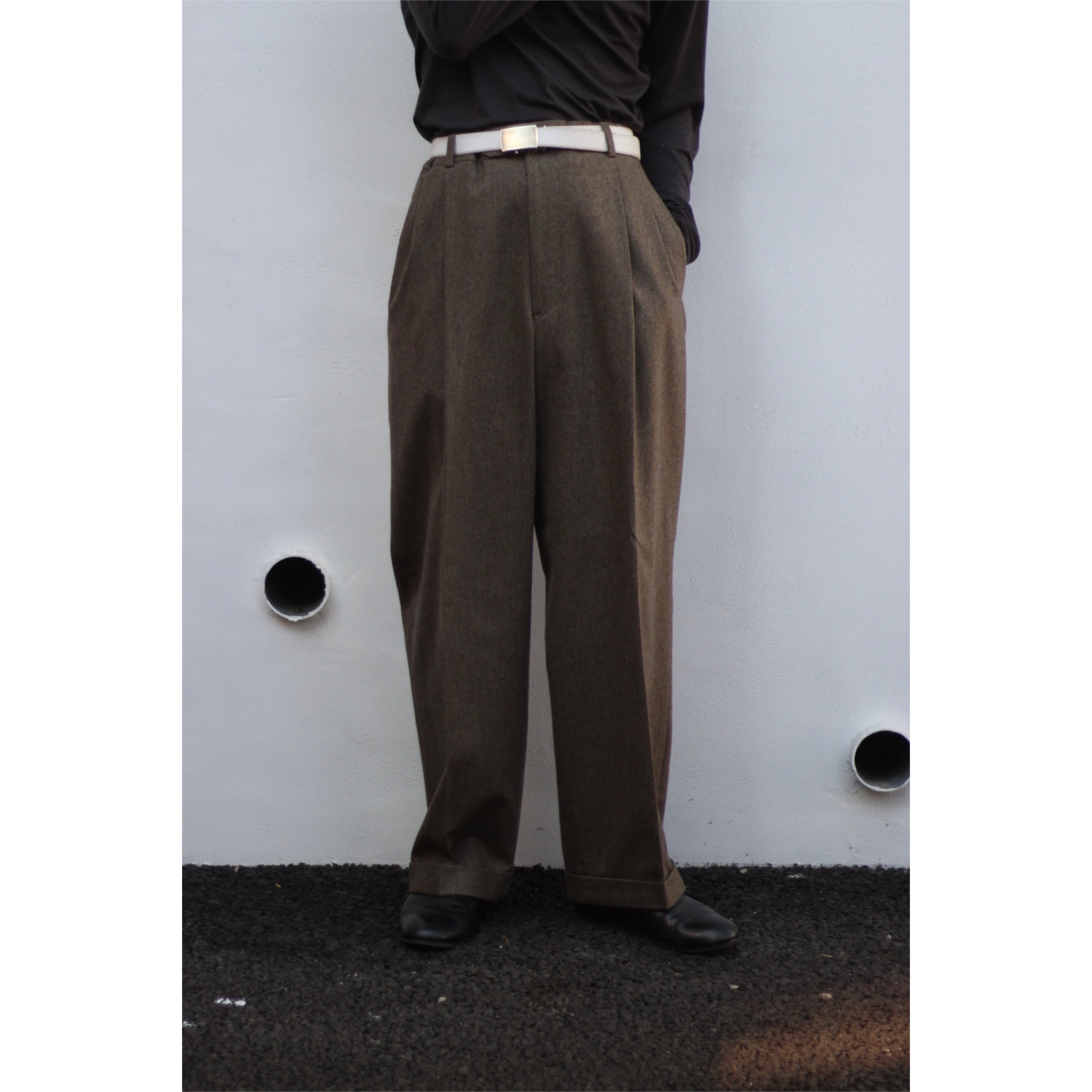 【OTSU】1980's vintage MANI by GIORGIO ARMANI cashmere mix 2-tuck wide slacks made in ITALY -9015-