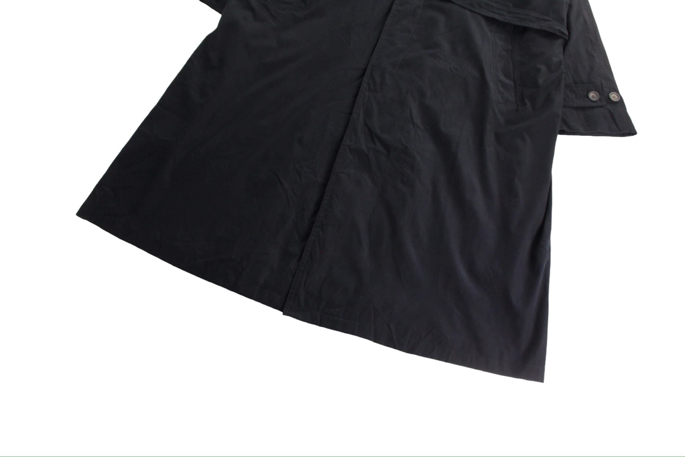 肩はラグランスリーブにより流れる様に馴染み,程良く肉厚なトロミのある生地感が裾に向かって垂れるよう落ちる色気のある雰囲気。フロントのみ肩のディテールが付くのも珍しいです☺︎そのファブリックを存分に味わえるゆったりオーバーサイズでの一着。着丈約130cmの素晴らしいサイズ感です。
