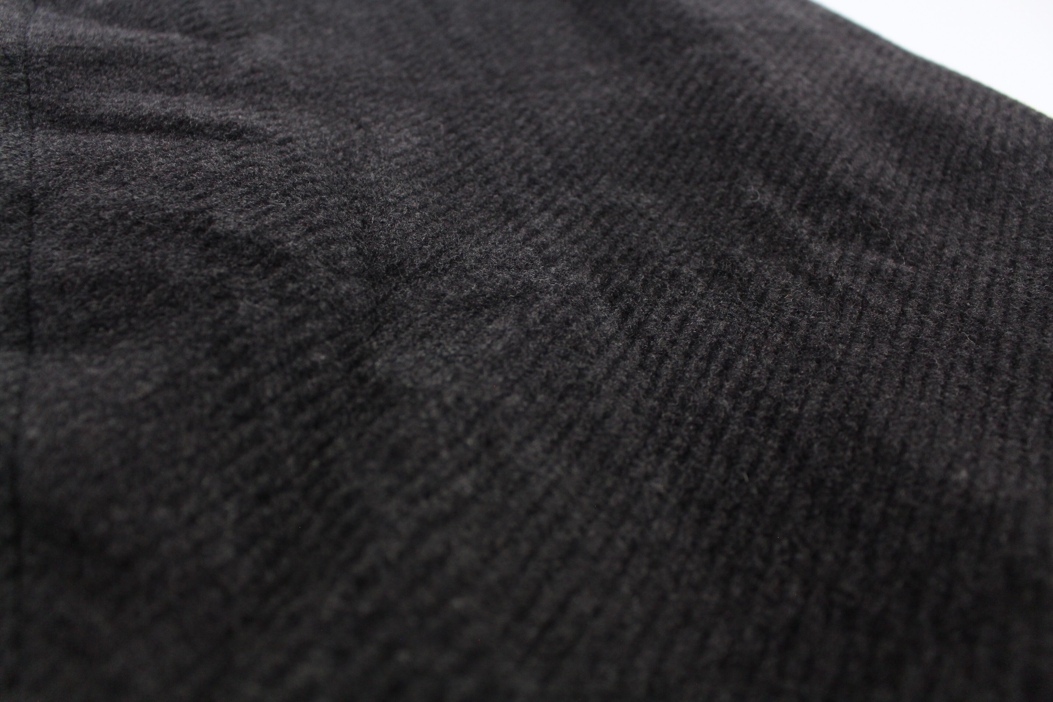 素材はしっとりと肉厚な上質なウール生地。肉厚ウールといっても重たさがなく、着心地がとても良いです。垂れ感のある綺麗に落ちるファブリックです。カラーも個人的に一番好きなチャコールグレーカラーに此方はさり気なくプレイド柄の入る洒落たデザイン。くっきり柄というよりはぼやけた柄感で無地感覚で使えながらも、奥行きがあってとても素敵☺︎