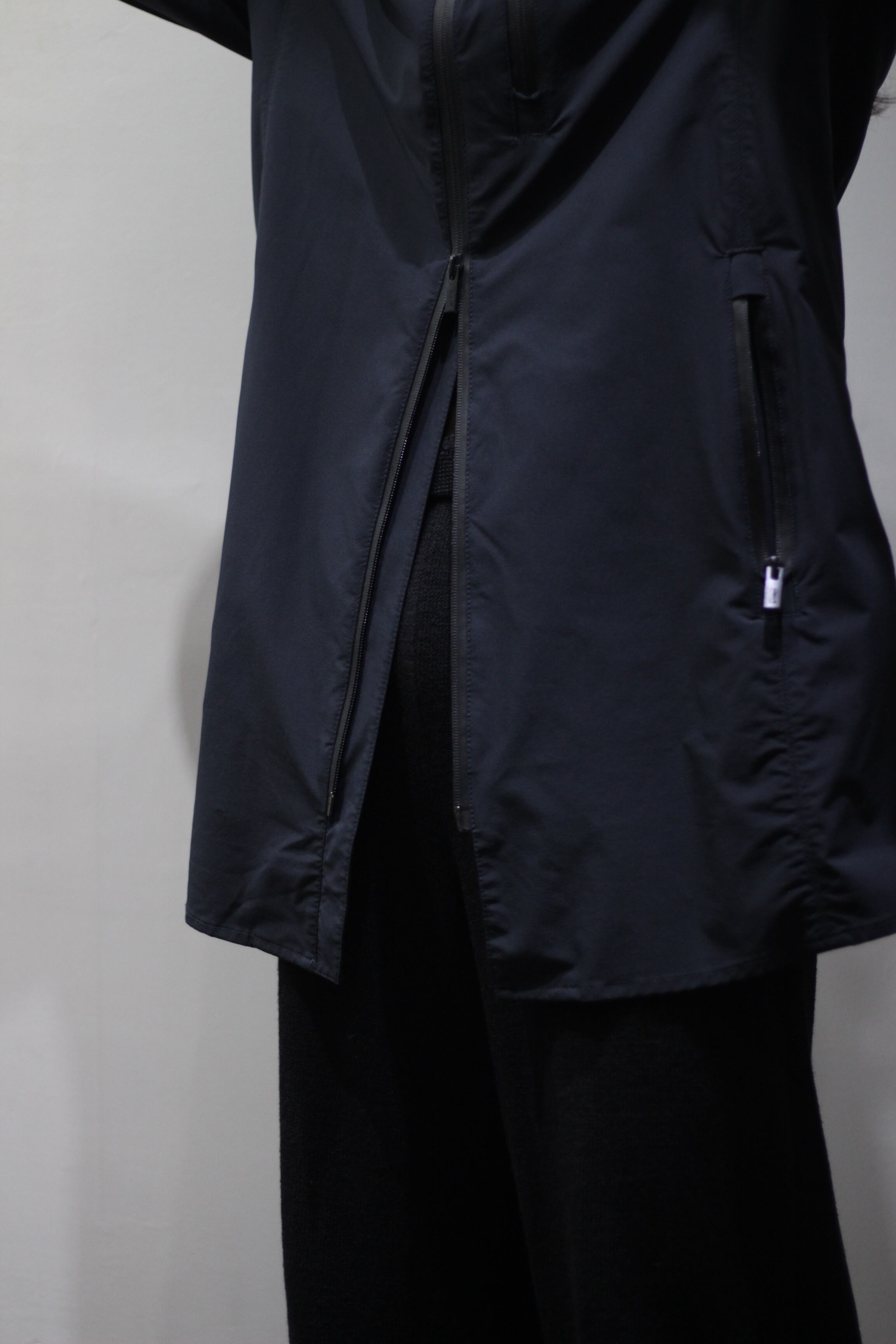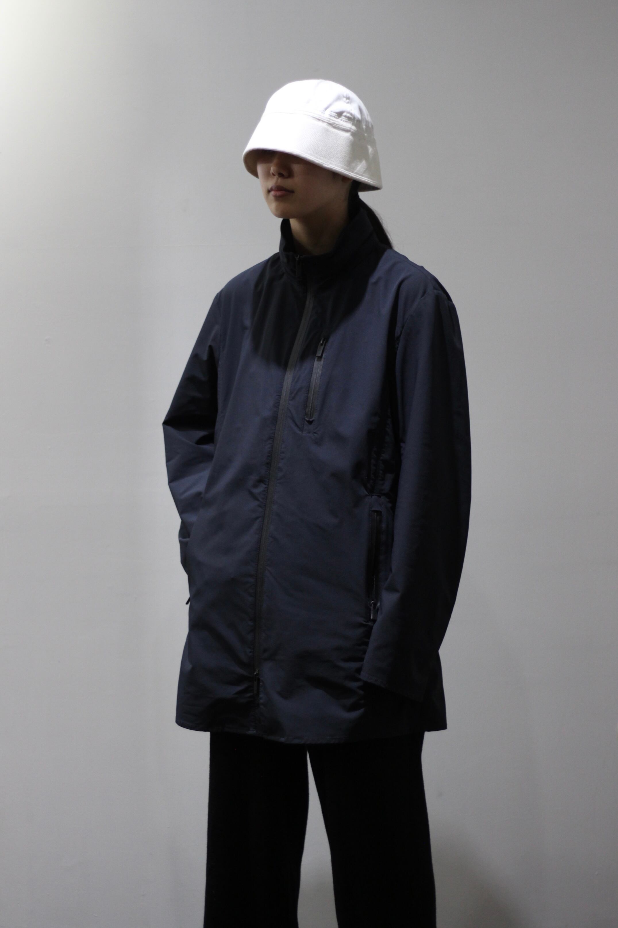 雨風を凌げる撥水性のあるファブリックや止水ジップ、フード収納された機能性のあるテック要素を盛り込んだ銘品です。