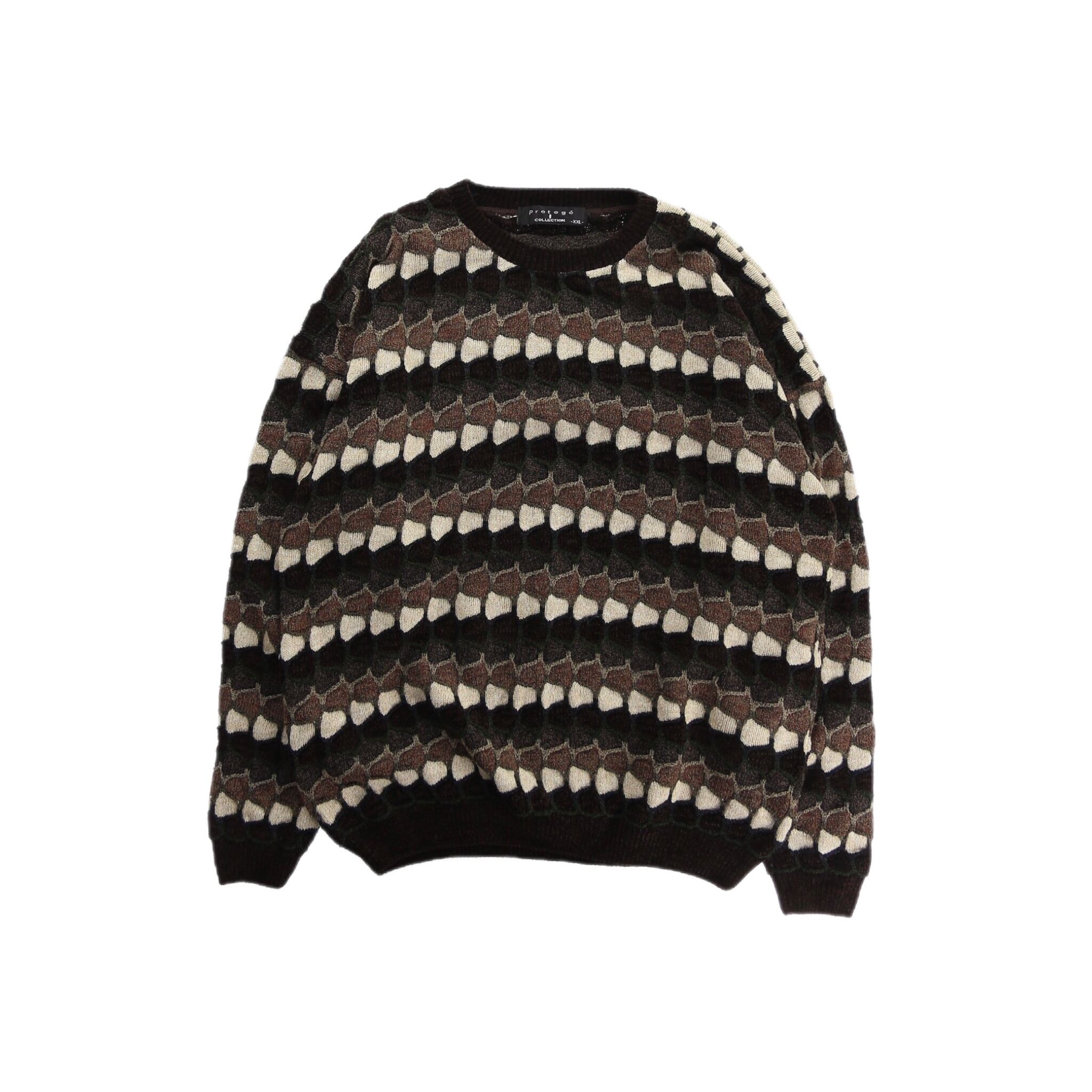 【FIFTY-FIFTY】1990s vintage protege collection all-over pattern 3D knit sweater made in USA -8482-