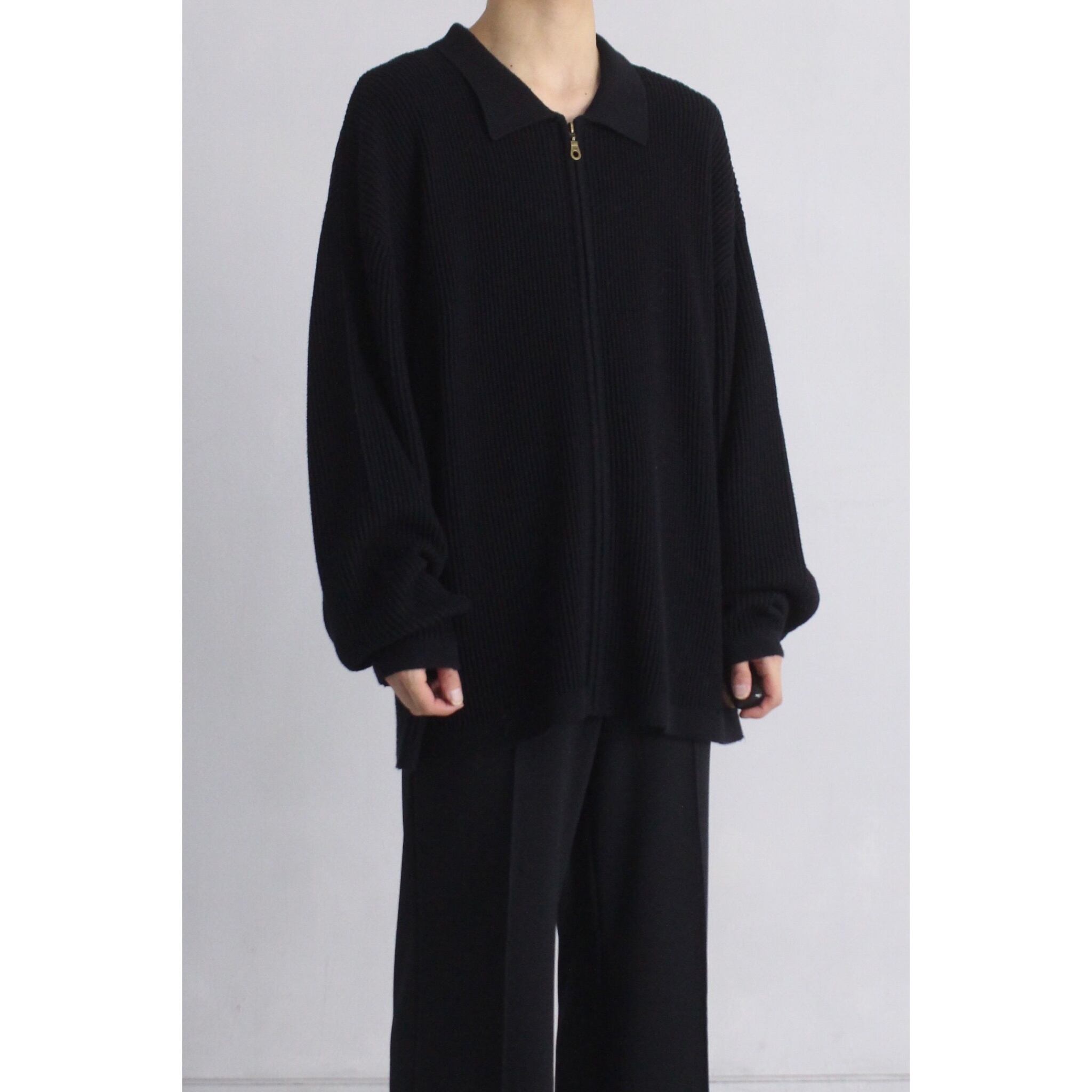 90年代頃の香港製の質の高い1着でオールニット素材。襟付きジップアップのシンプルな形ですがニット素材により上品な雰囲気が漂うジャケット。無地ながらもボディには3Dのラインデザインが入りモードすぎないカジュアルダウンなアイテム。
