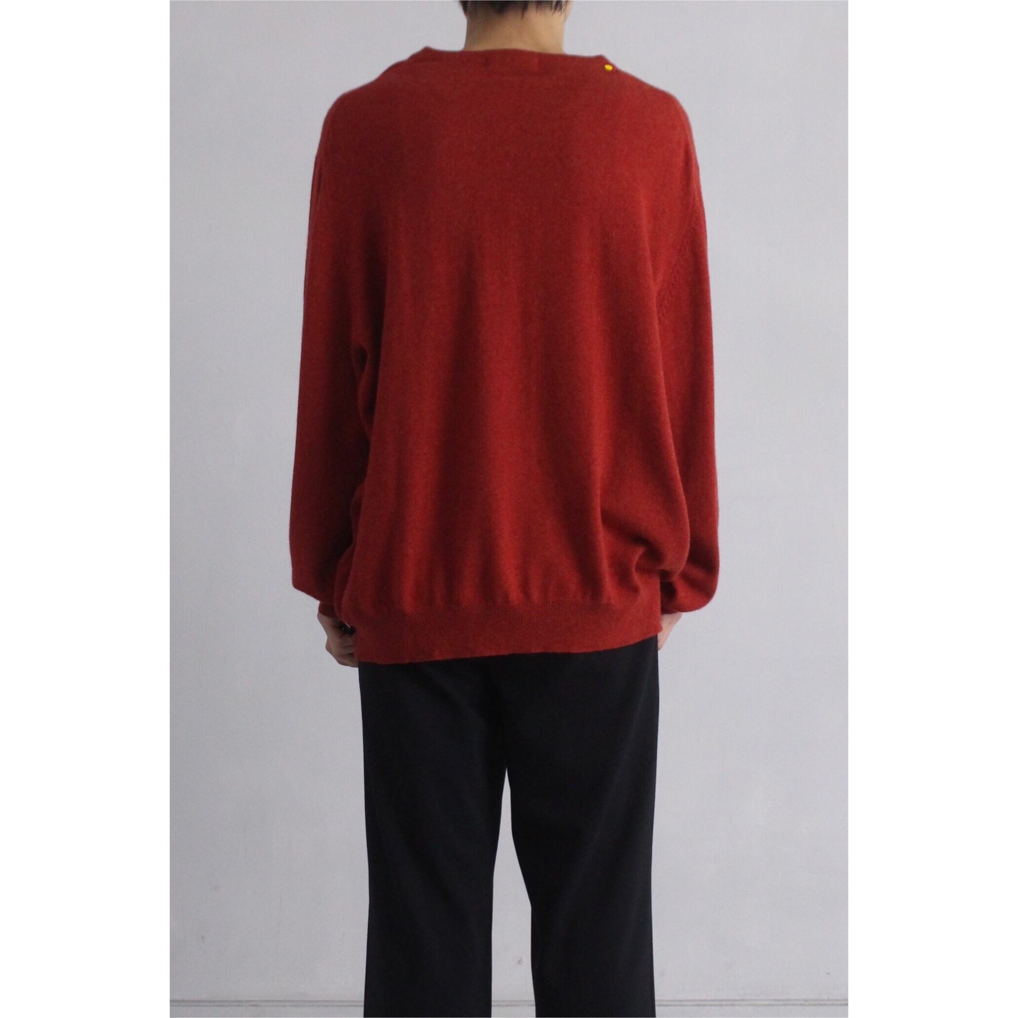 【FIFTY-FIFTY】cashmere 100% vermilion colour oversized Vneck knit sweater -8536-