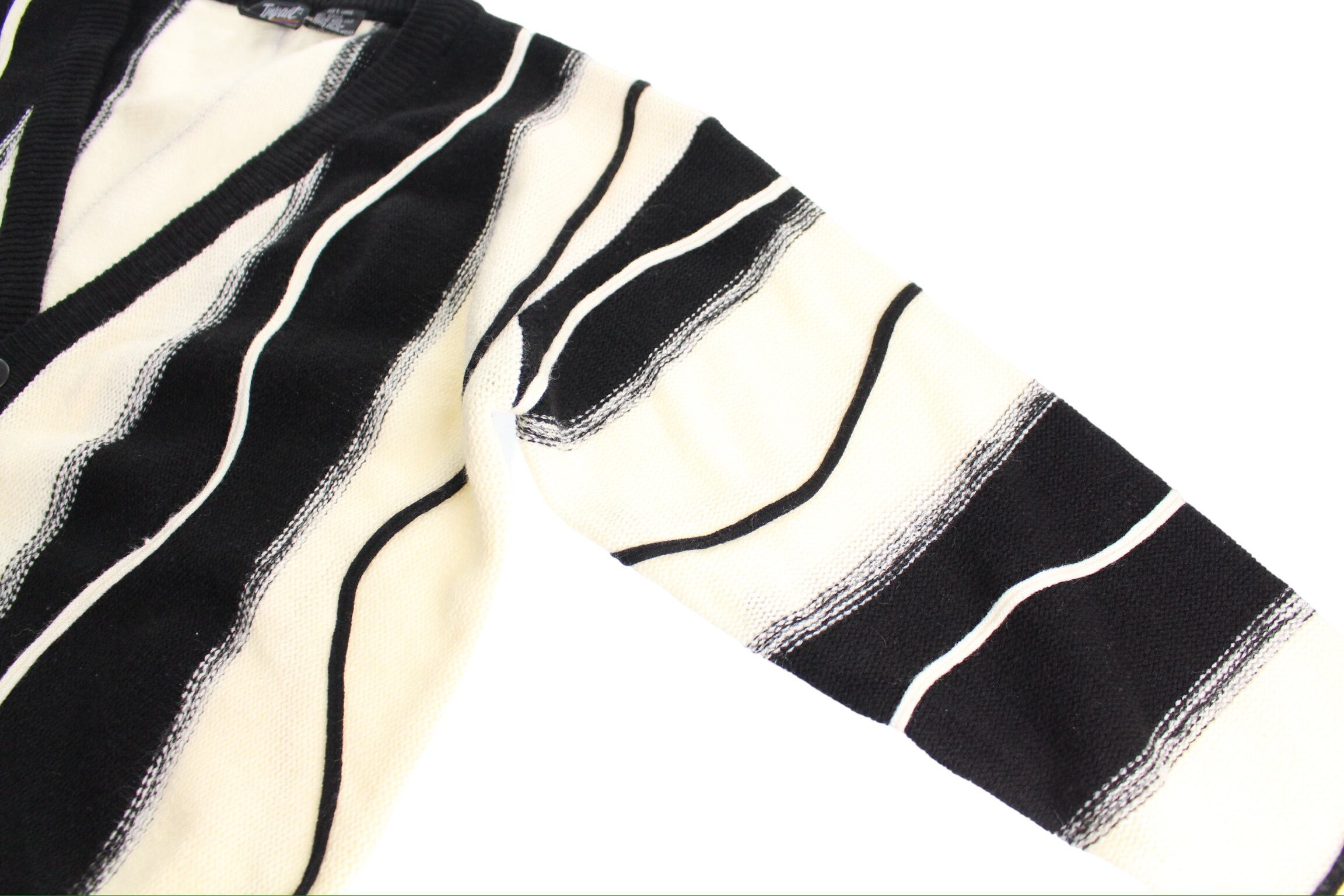 ブラック×オフホワイトのモノトーンの配色に通年活躍できる柔らかいアクリル生地。落ち着いたトーンですが地味過ぎない良いカラートーンの総柄ニット。着てみると悪目立ちなく馴染む柄感です☺︎