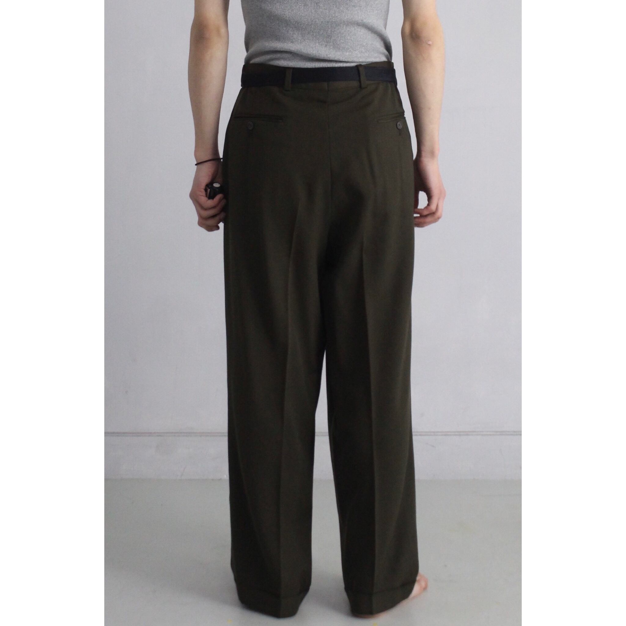 【FIFTY-FIFTY】1990s vintage olive colour wool 3tuck slacks made in Canada -8559-