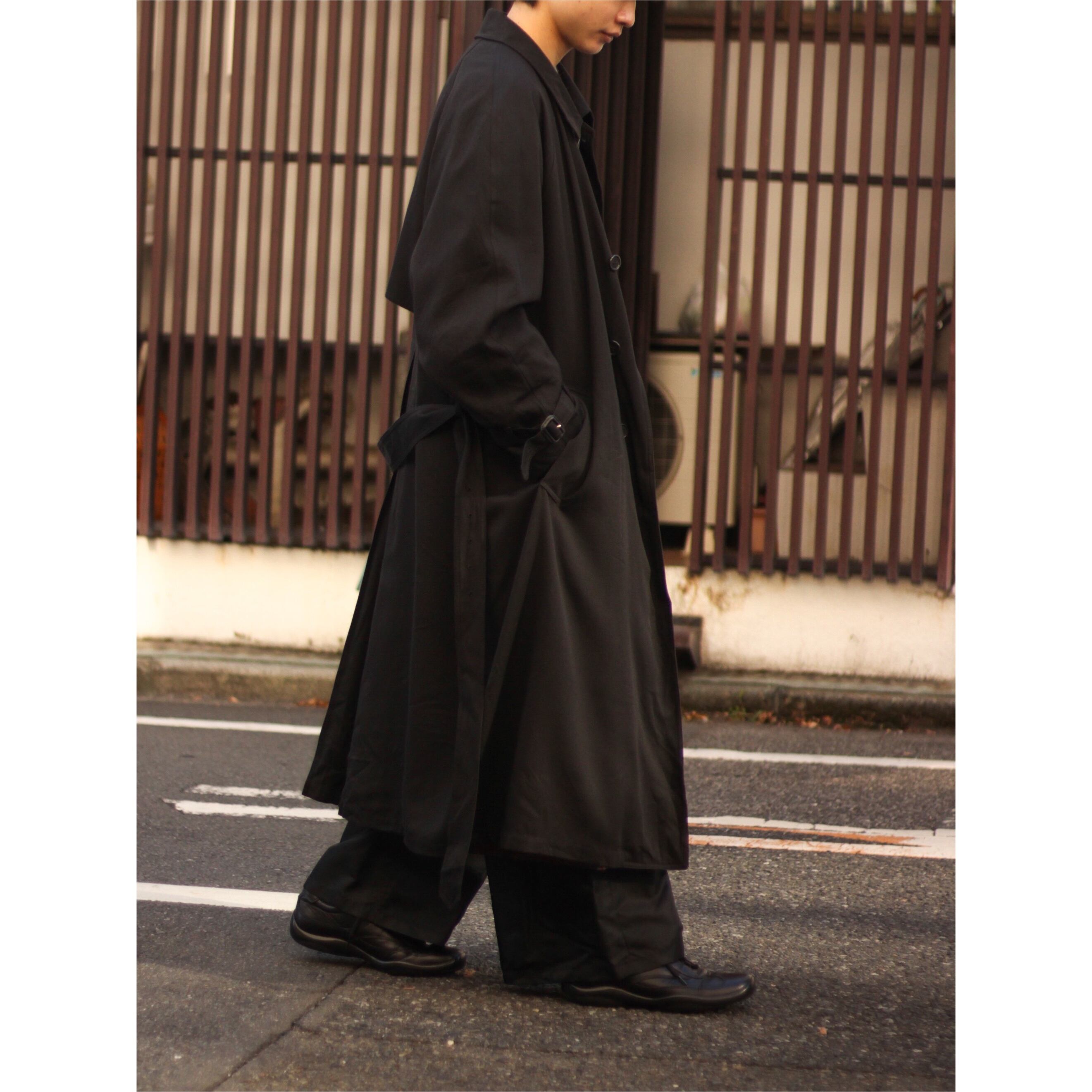 ウールギャバ特有のハリがありながらも裾に向かってトロッと垂れる様にドレープする生地がすごく色気のあるコートです。更にはそのファブリックを存分に活かした生地分量たっぷりなオーバーサイズ仕様が最高に格好良いコートです。