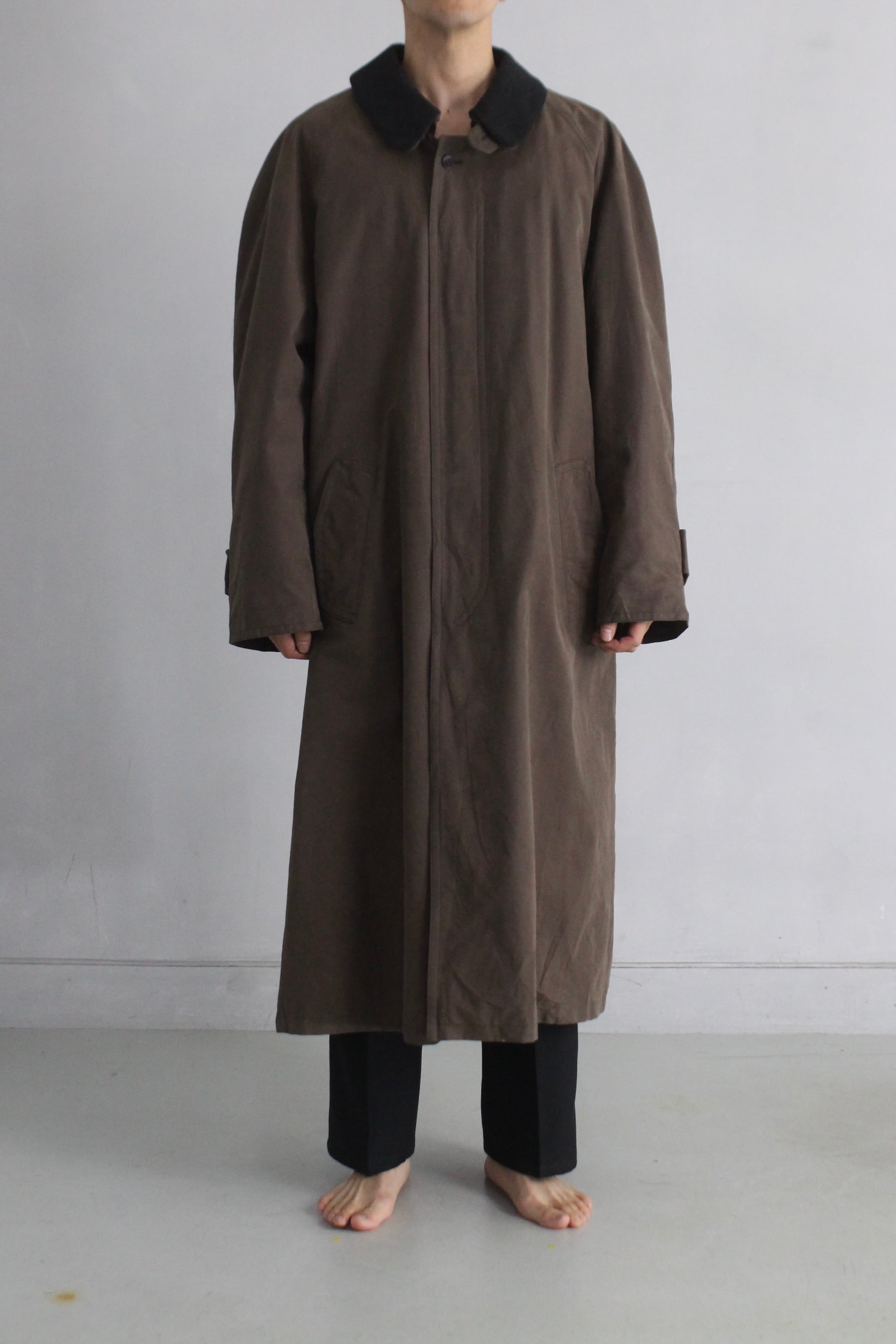 【FIFTY-FIFTY】1990's BARNEYS NEW YORK cotton gabardine swiching collar soutien collar coat with chinstrap made in Germany -9201-