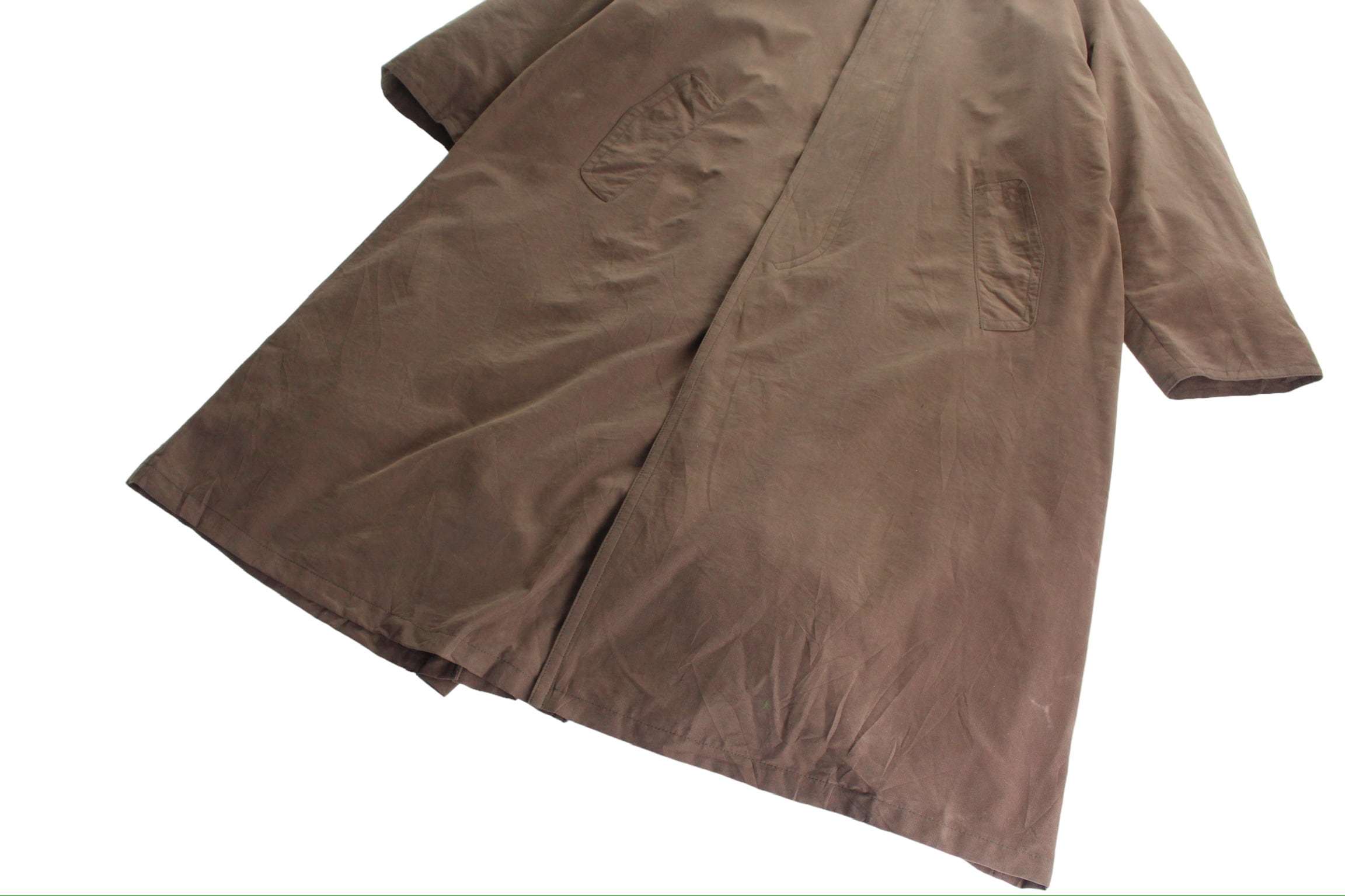 現代ではまずない,一味違うスモークブラウンの深みのある綺麗なカラーリング。古着ながらもヨーロッパの気品溢れる,今っぽい着こなしができるコートかと☺︎思ったより茶色味はないので春先にも◎