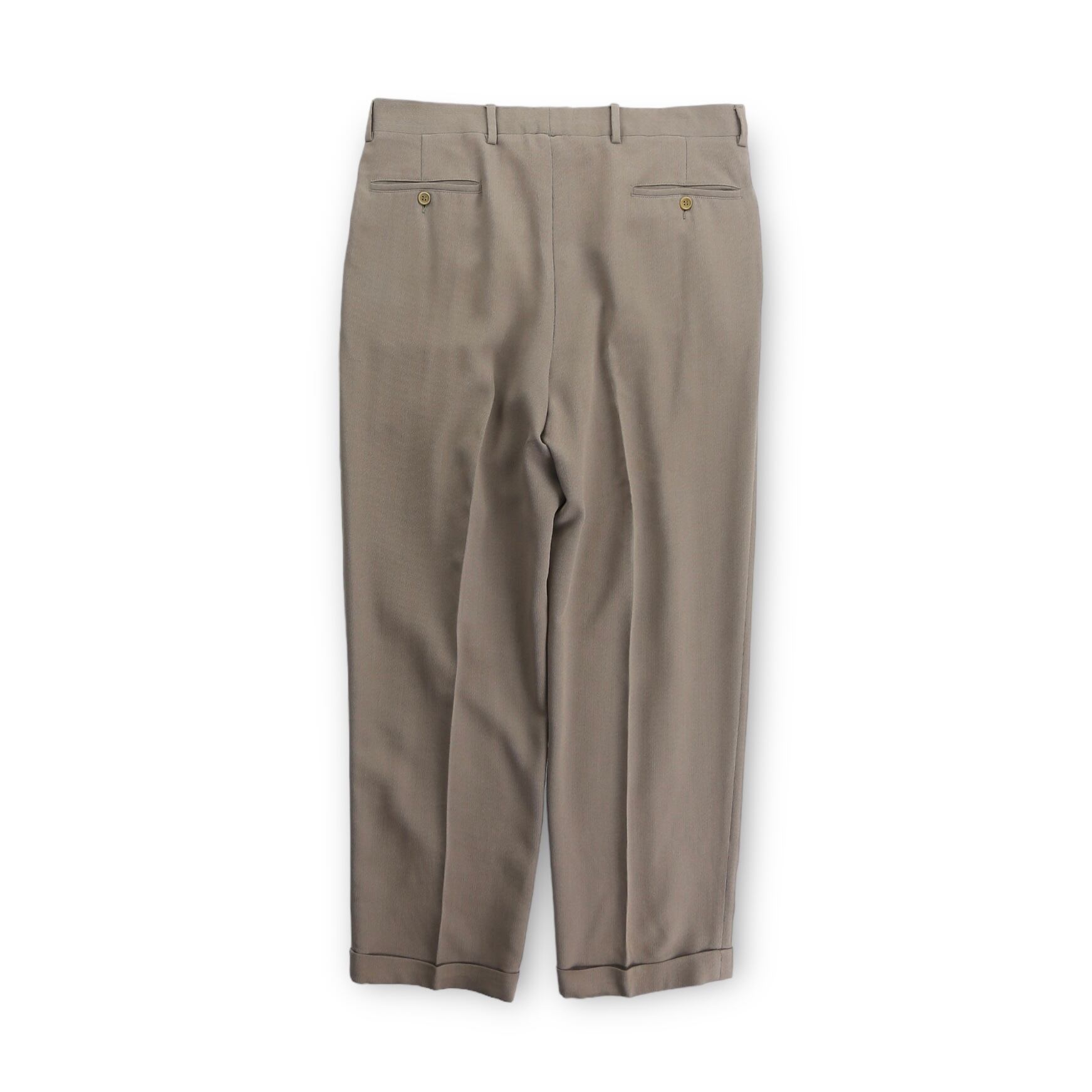 私用でも間違いなく汎用性抜群なウエスト3タックにとろっとした素材感を存分に活かせるワイドシルエットのスラックスとなります。