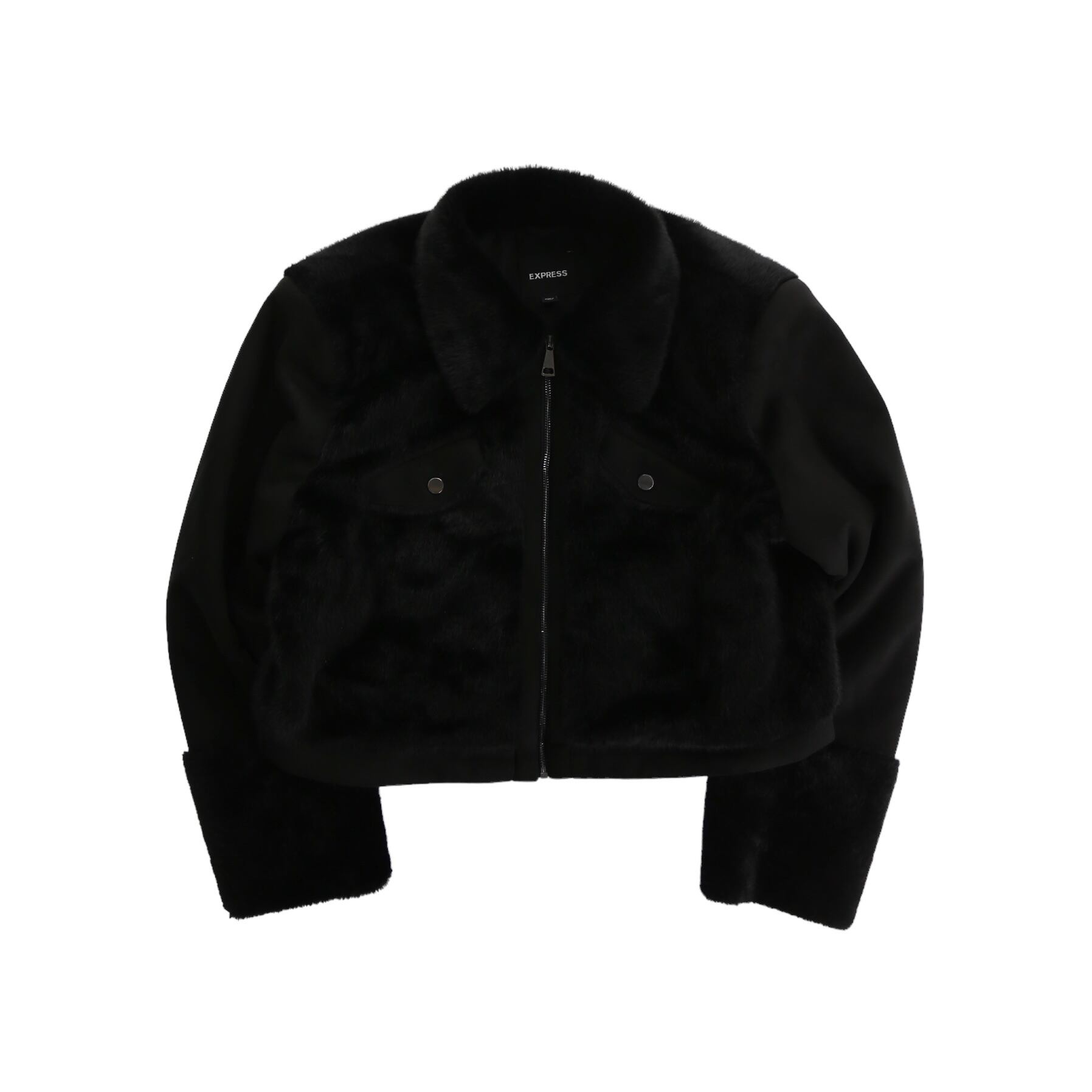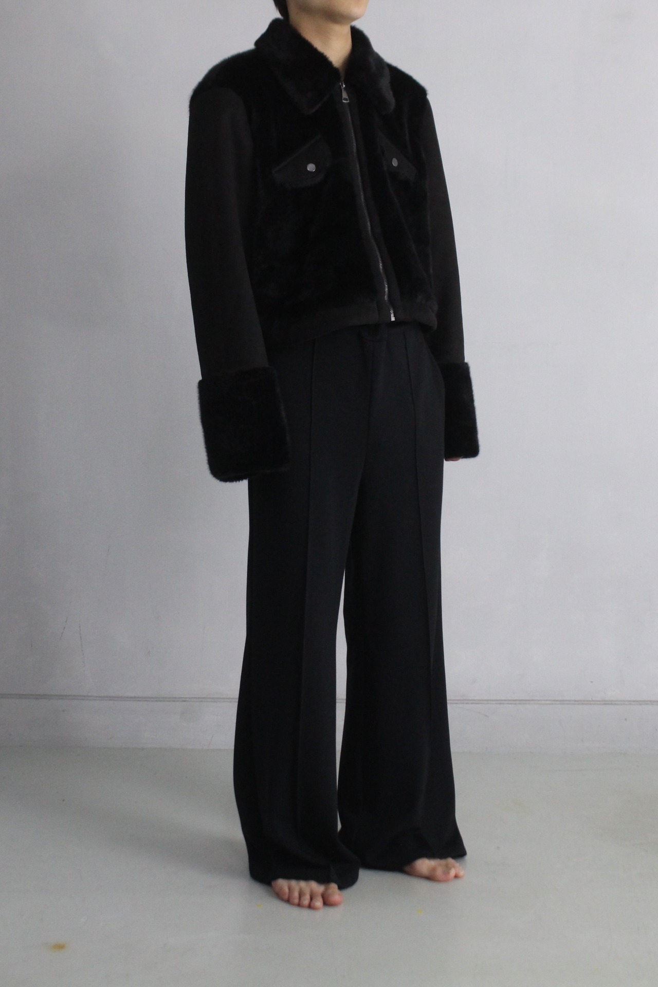 【OTSU】very short length faux far swiching design jacket -9273-