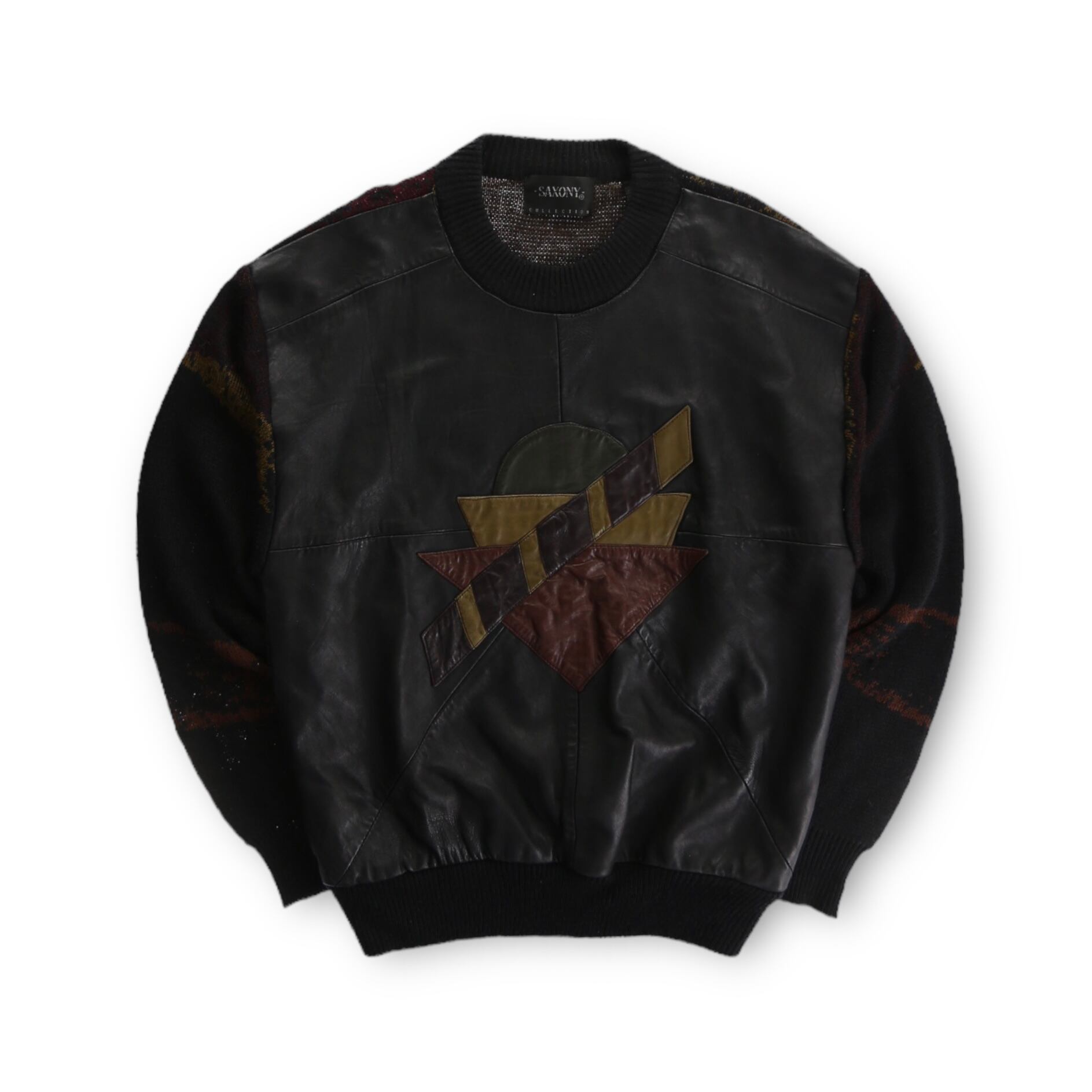 1990年代、レザーコンボのニットセーターとなります。SAXONYの代名詞、銘品のひとつなカッコ良いニット☺︎