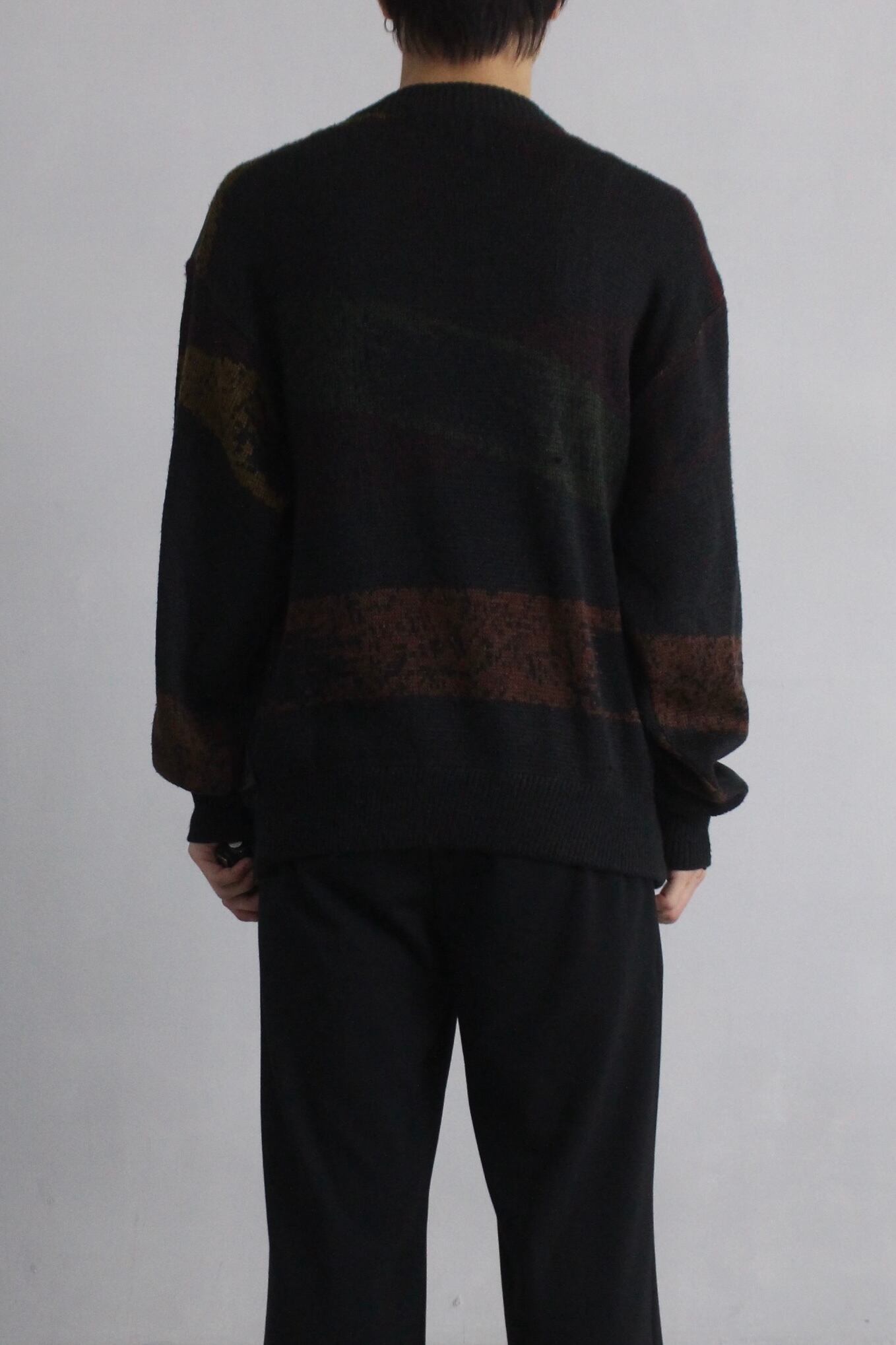 【COU】1990s vintage SAXONY leather combo design knit sweater -4303-