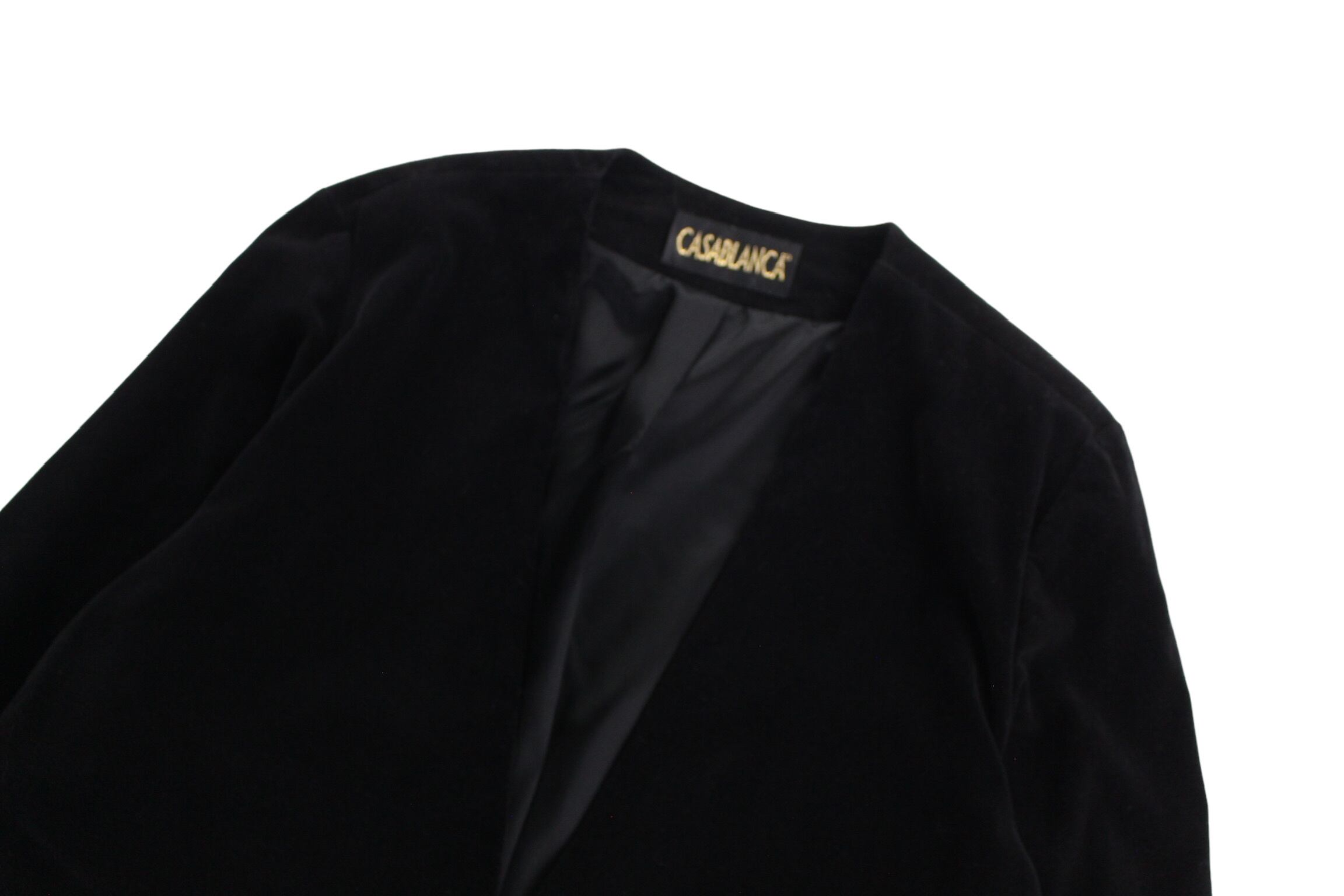 【OTSU】1980's vintage velour fabric no collar jacket made in USA -9299-