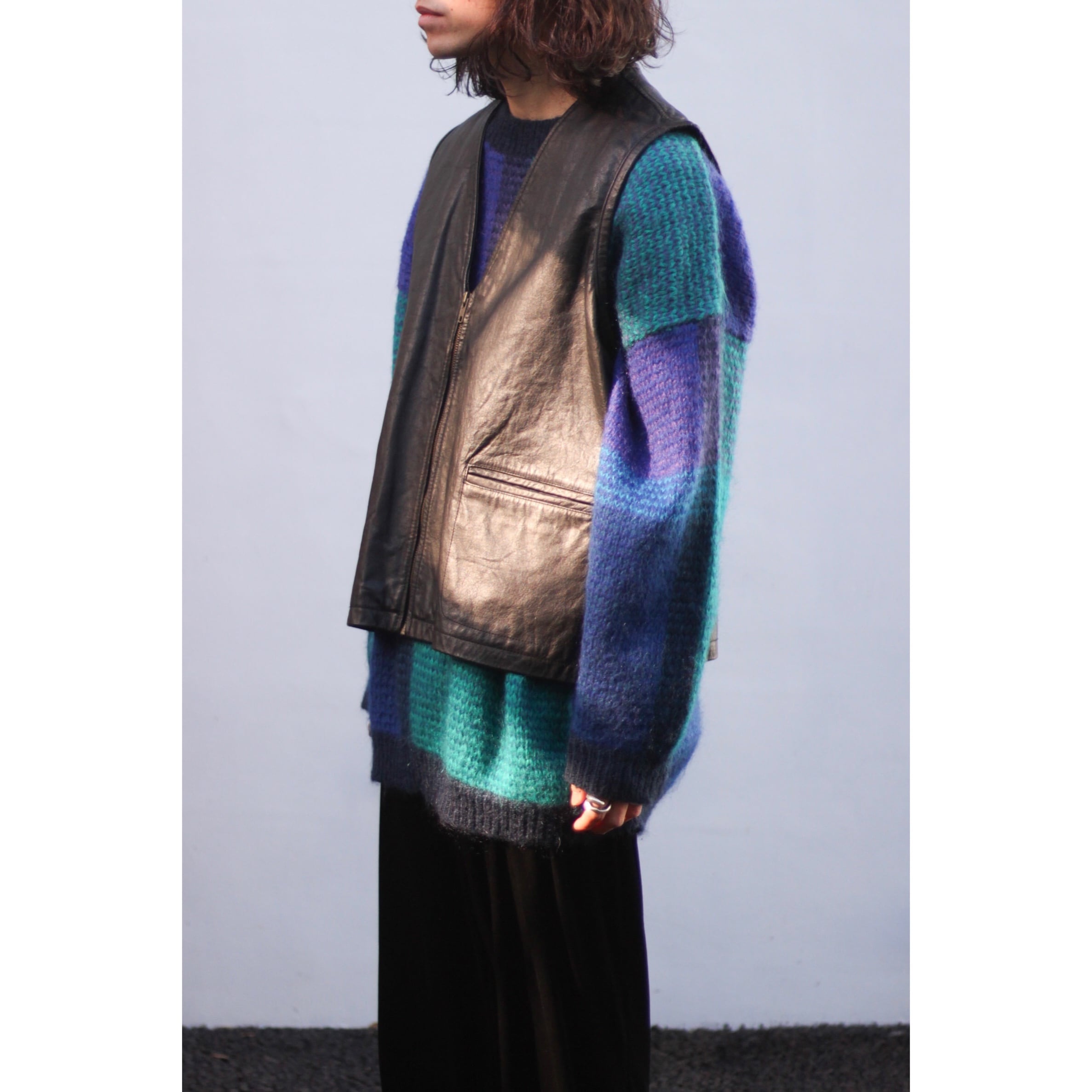 レザーベストでクセのないクリーンな印象。