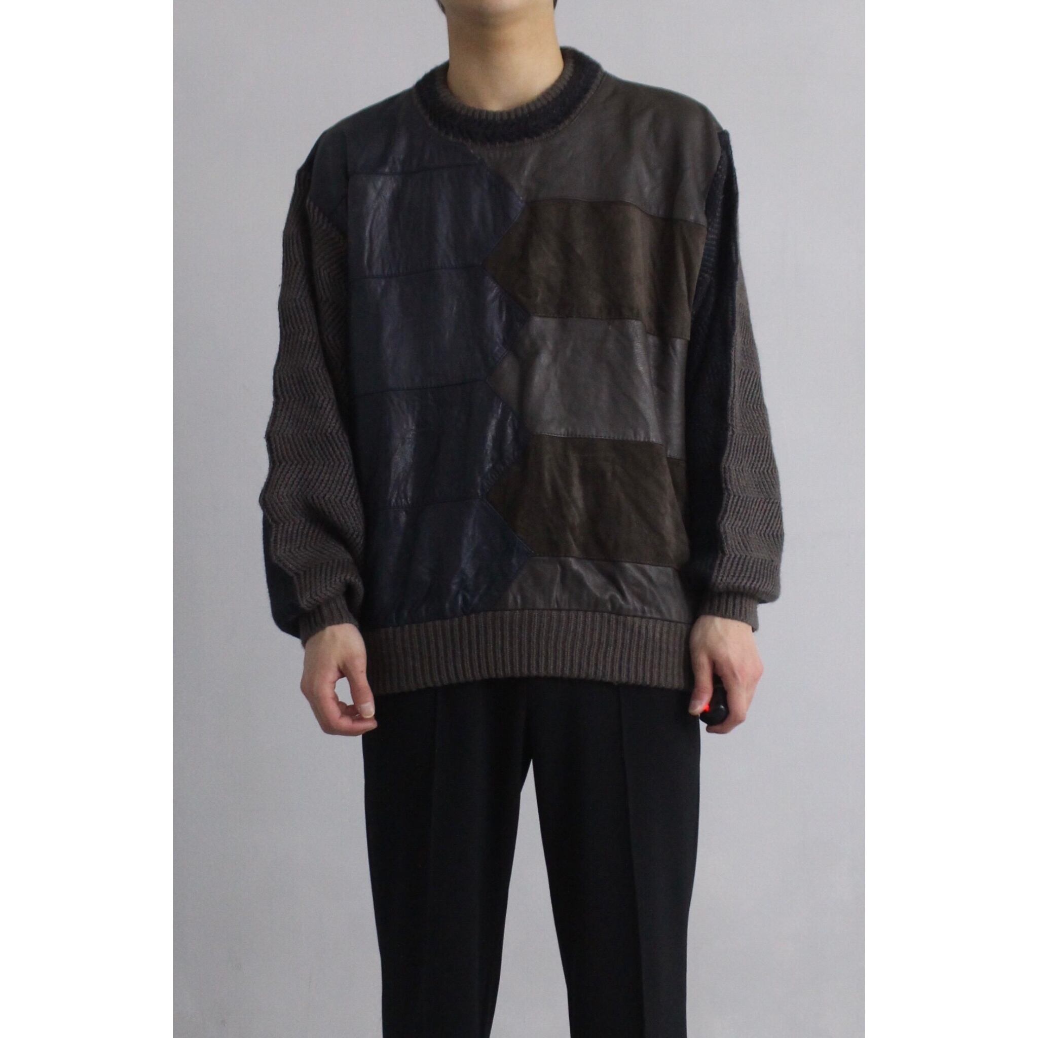新品,古着問わずまずお目にかかれないレザー切替ニットセーター。