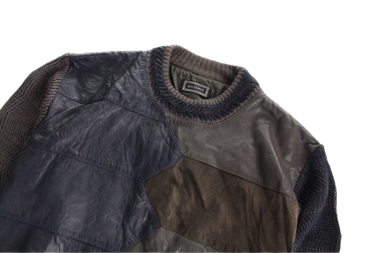【FIFTY-FIFTY】1990s vintage "SAXONY" symmetry design leather mix 3D knit -8740-