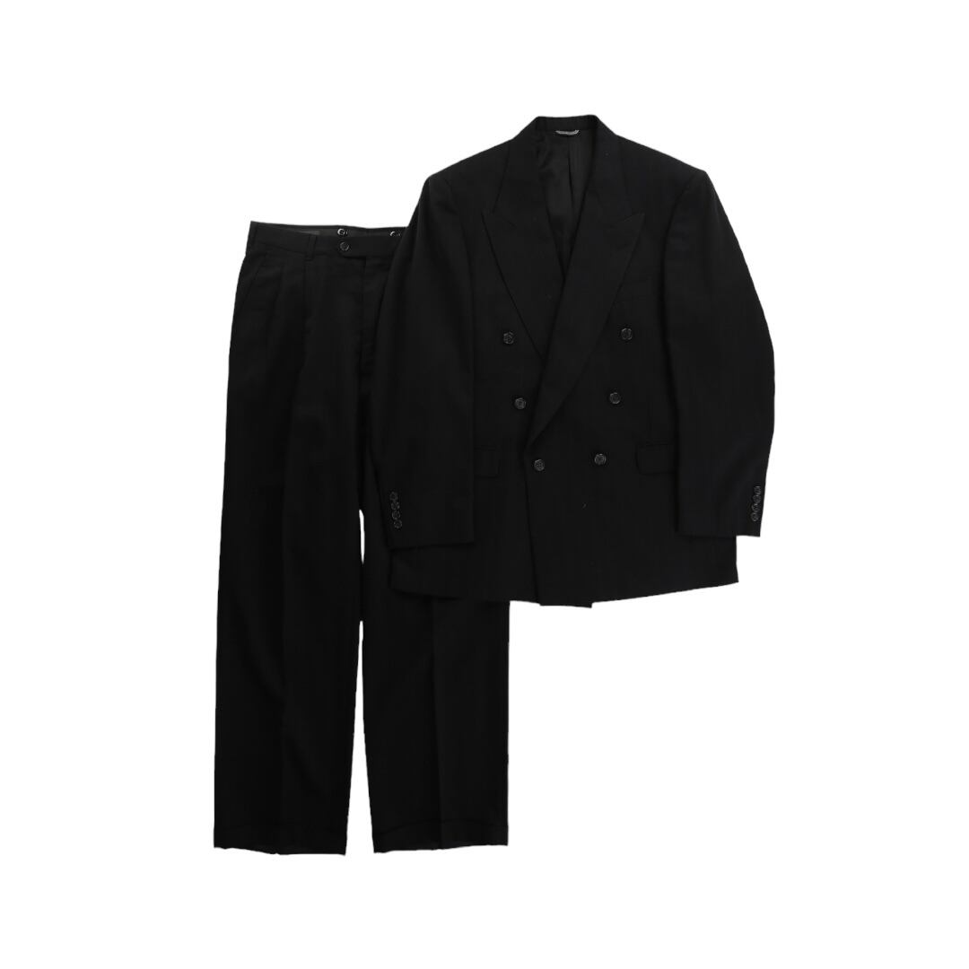 【OTSU】1990's 2-piece suits set up / double breast tailored jacket & 2-tuck wide slacks made in USA -9315-