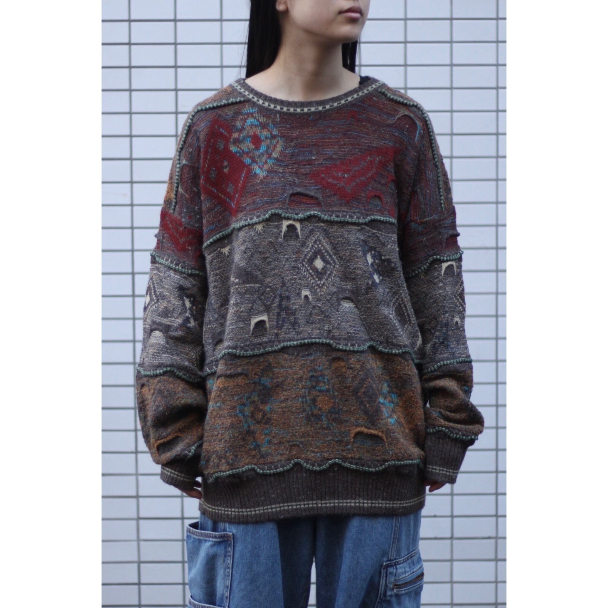 【COU】1990s made in ITALY alpaca mixed 3D design knit sweater -4316-