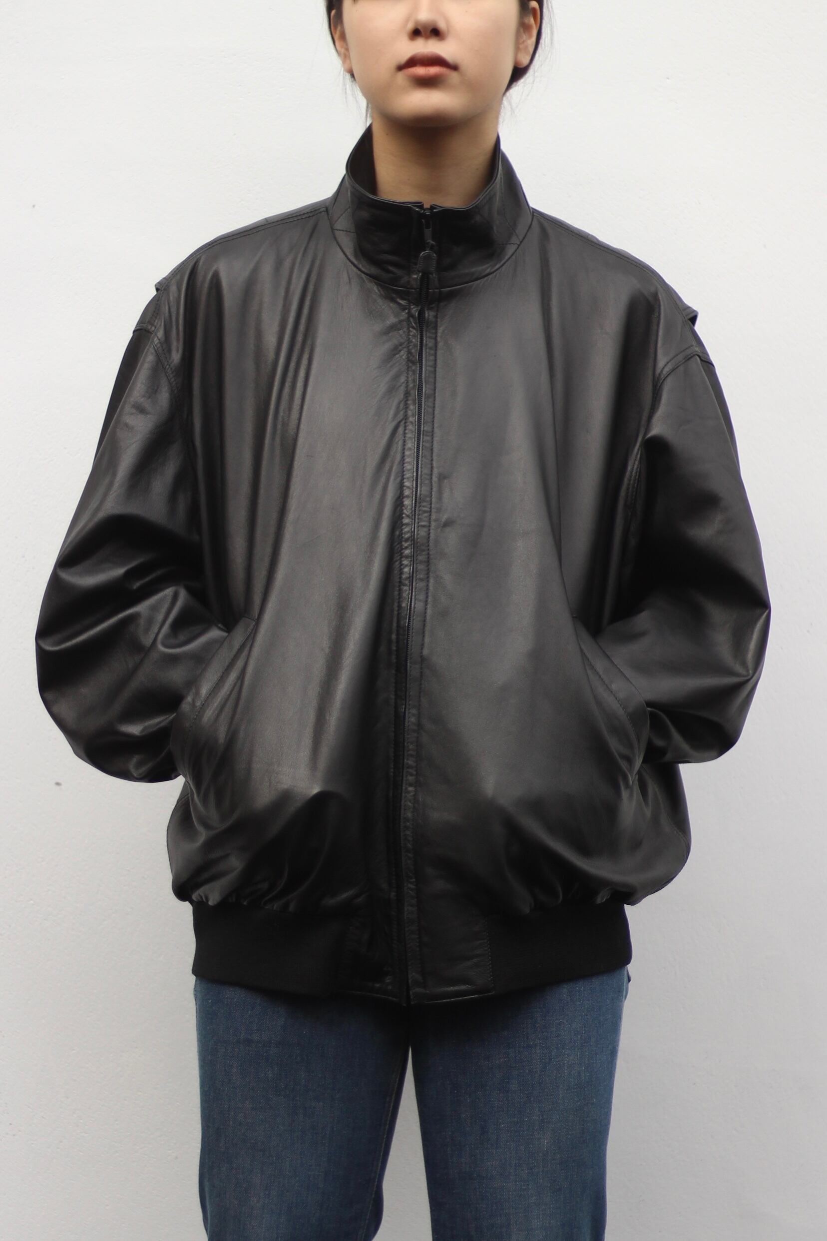 【COU】made in Italy "VERA PELLE LEATHER " 1990's vintage stand collar lamb leather jacket -4337-