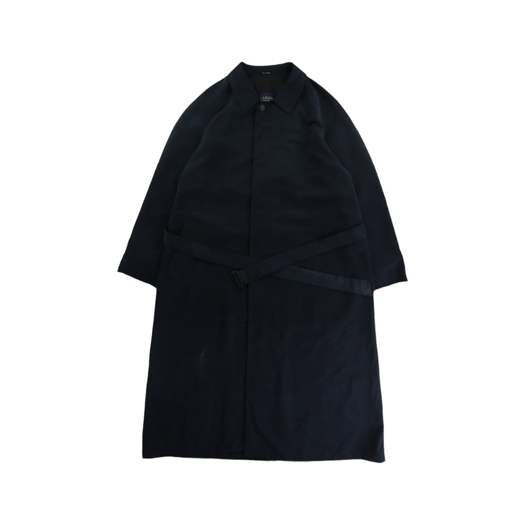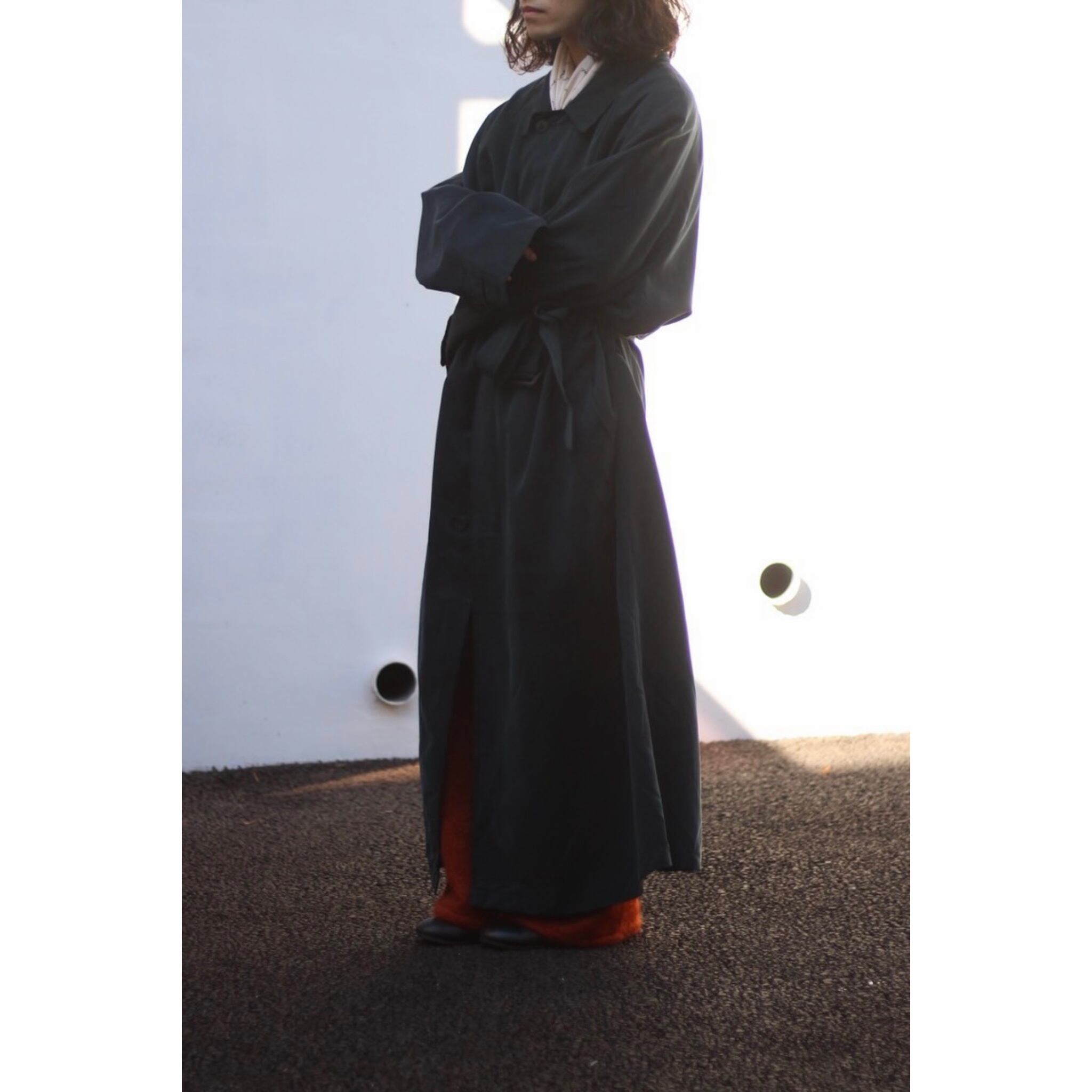 【OTSU】1990's SANYO very smooth fabric belted maxi balmacaan coat -9382-