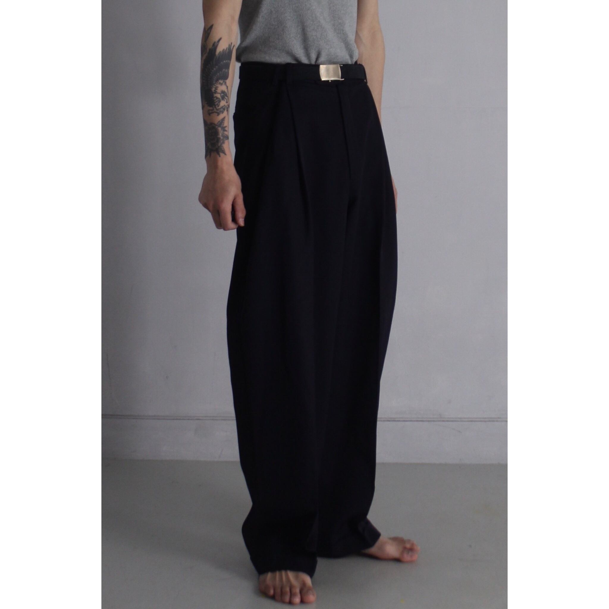 メゾンブランドらしい高品質なウールギャバジン生地でウールとは思えないほどのとろみファブリック。起毛感少なくウール特有のハリ,光沢をそのままに。なスペシャルなスラックス。