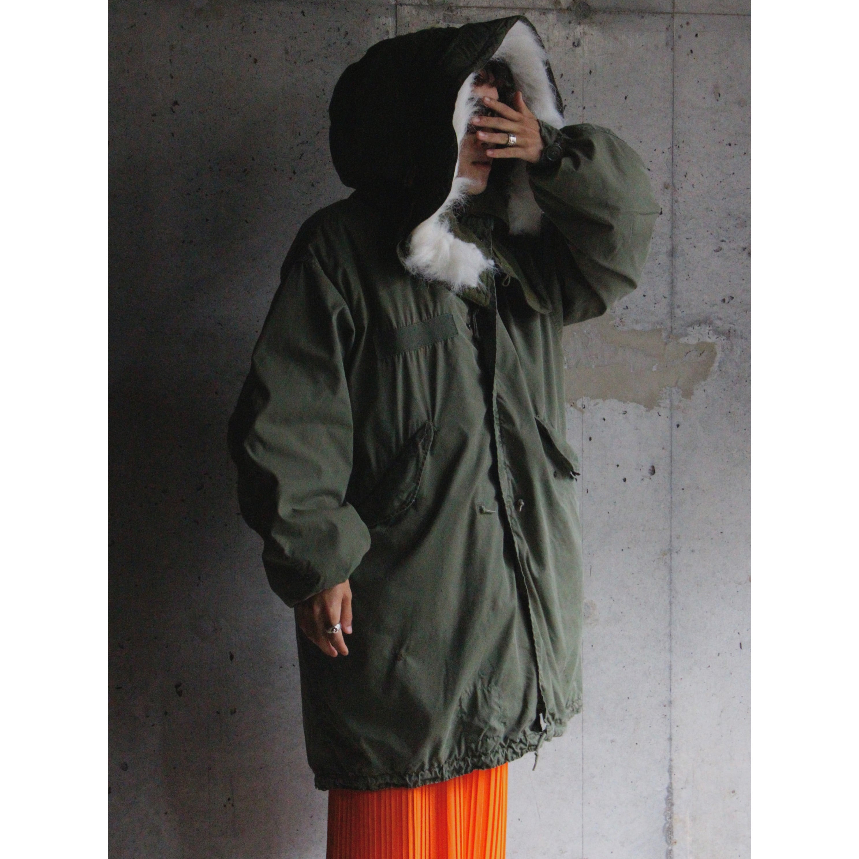 シェルのみ70年代の古い個体に、付属するフーディー、キルティングライナーは80年代の個体。