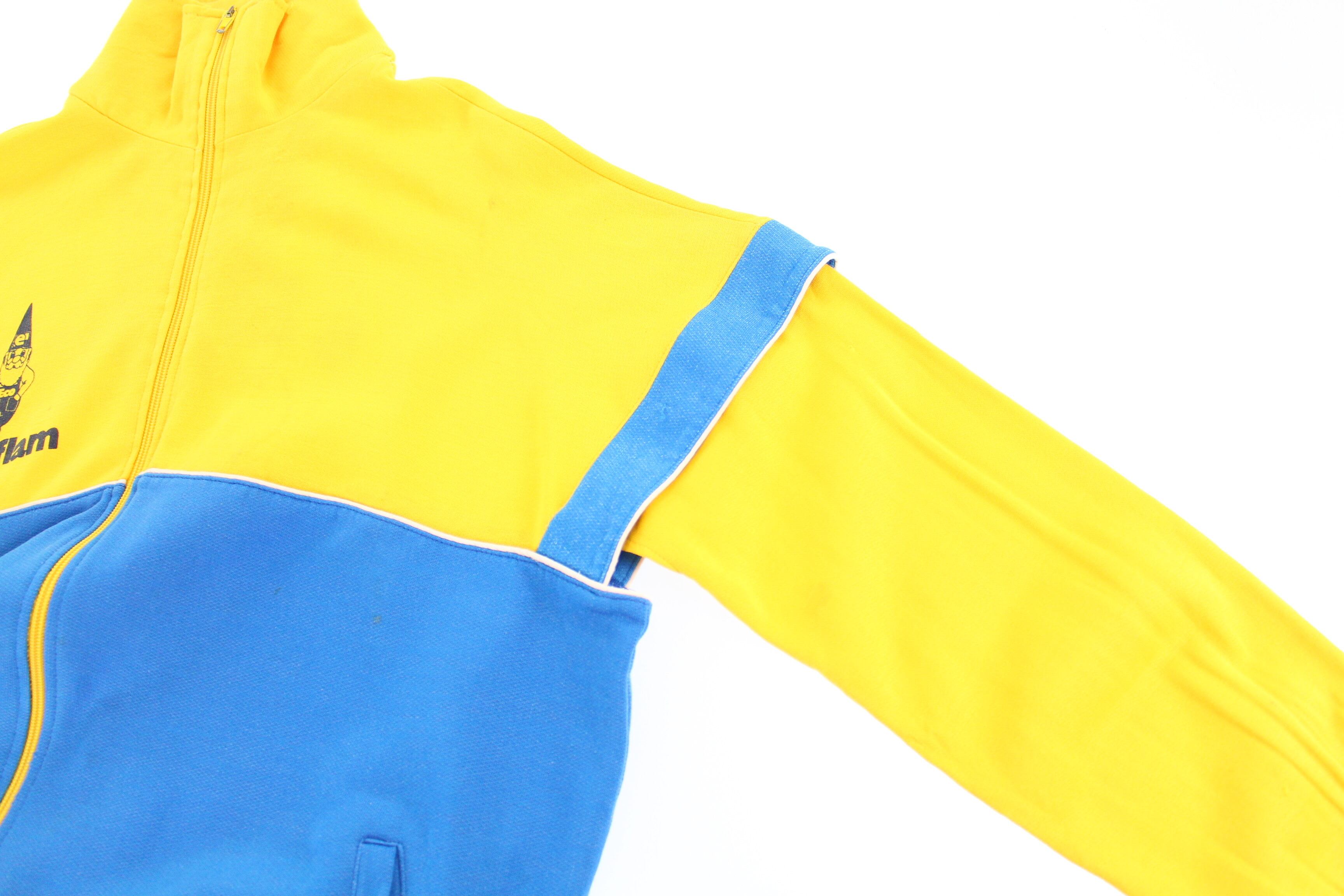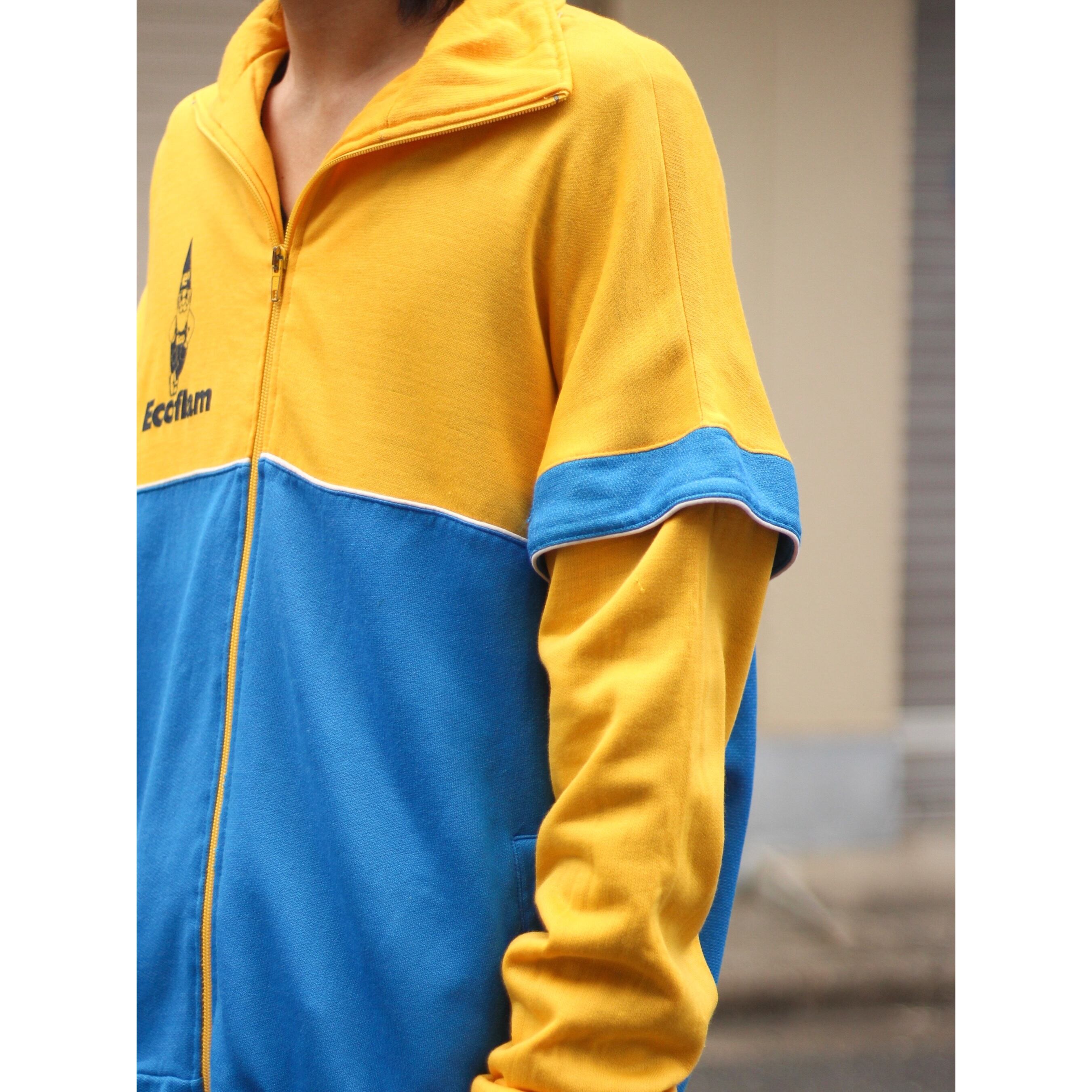 ヴィンテージ らしい雰囲気のあるさらっとして滑らかでオチ感のあるジャージーファブリックに、イエロー×ブルーの最高なカラーリングです。