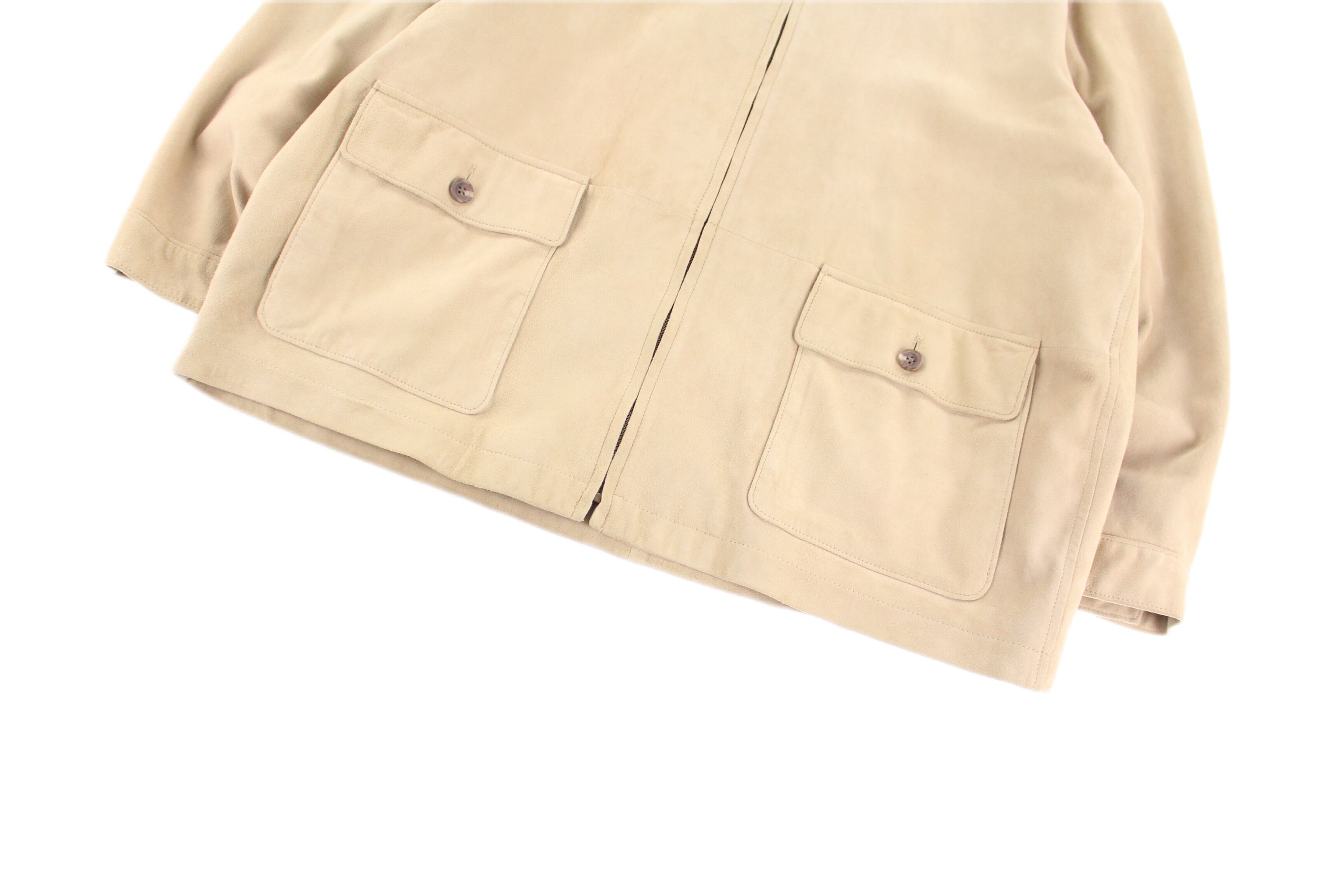 とにかく滑らかで柔らかいリアルスエードレザー。レザーながらも軽さも兼ね備え着用時はノンストレス。この手のブルゾンの生地に多いポリ素材には,まず出せないスエードレザーの雰囲気あるアイテム。