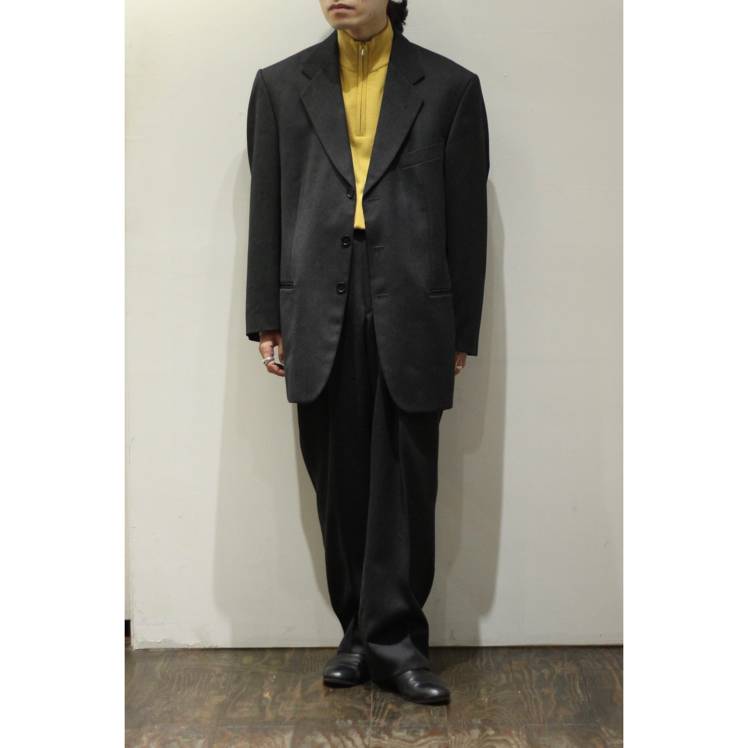 【OTSU】1990's 2-piece suits set up / 3B tailored jacket & 3-tuck wide slacks made in Canada -9471-