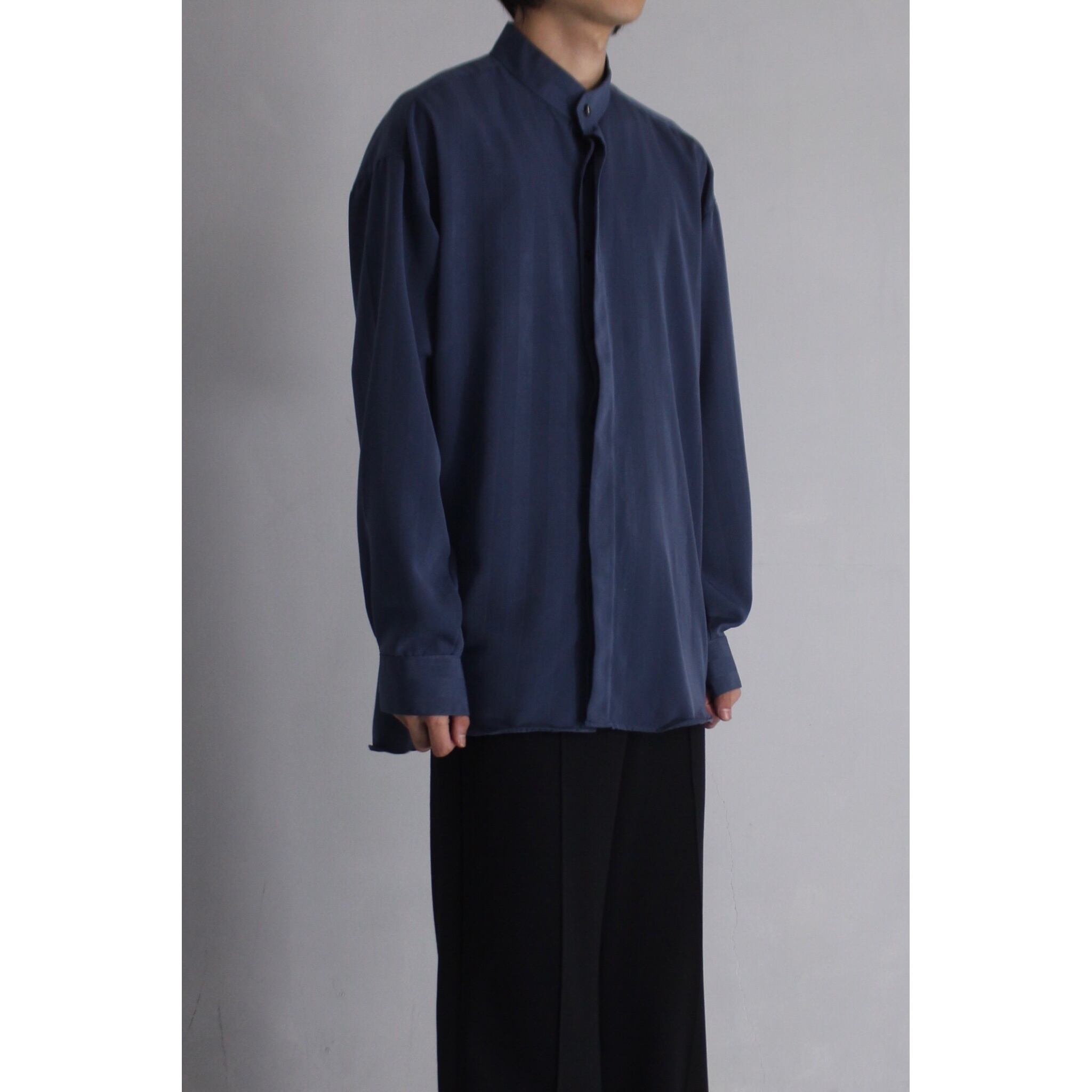 プレーンな物とは違い同色でストライプが入る珍しいバンドカラーシャツ。光の当たり方で魅せる表情が違うのが魅力的です☺︎