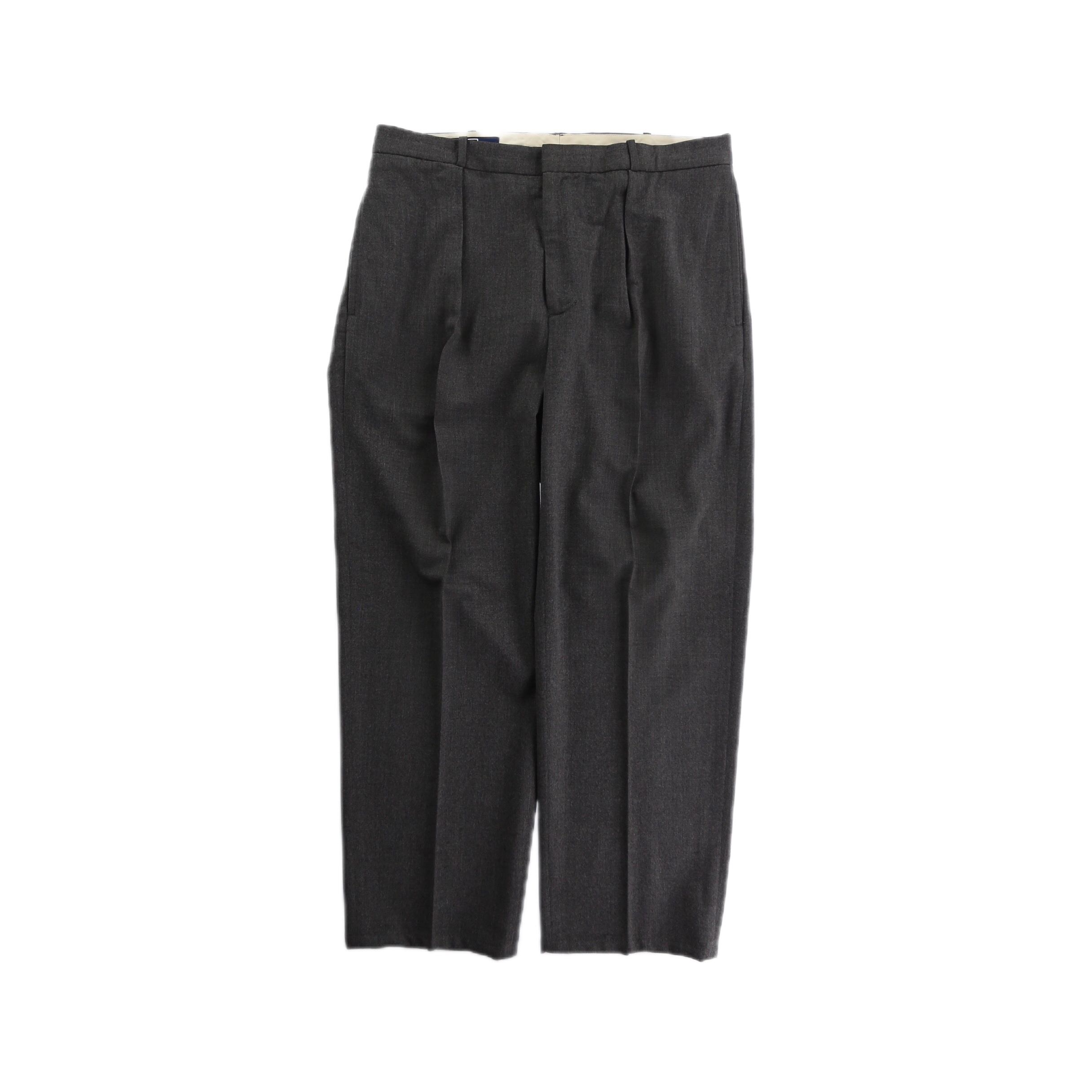 一見普通のスラックスですが細部までの作り込みが圧倒的に良い。ウール×スパンデックス混紡の伸びととろみのある生地。織柄によりほんのり霜降りのようなデザインも◎