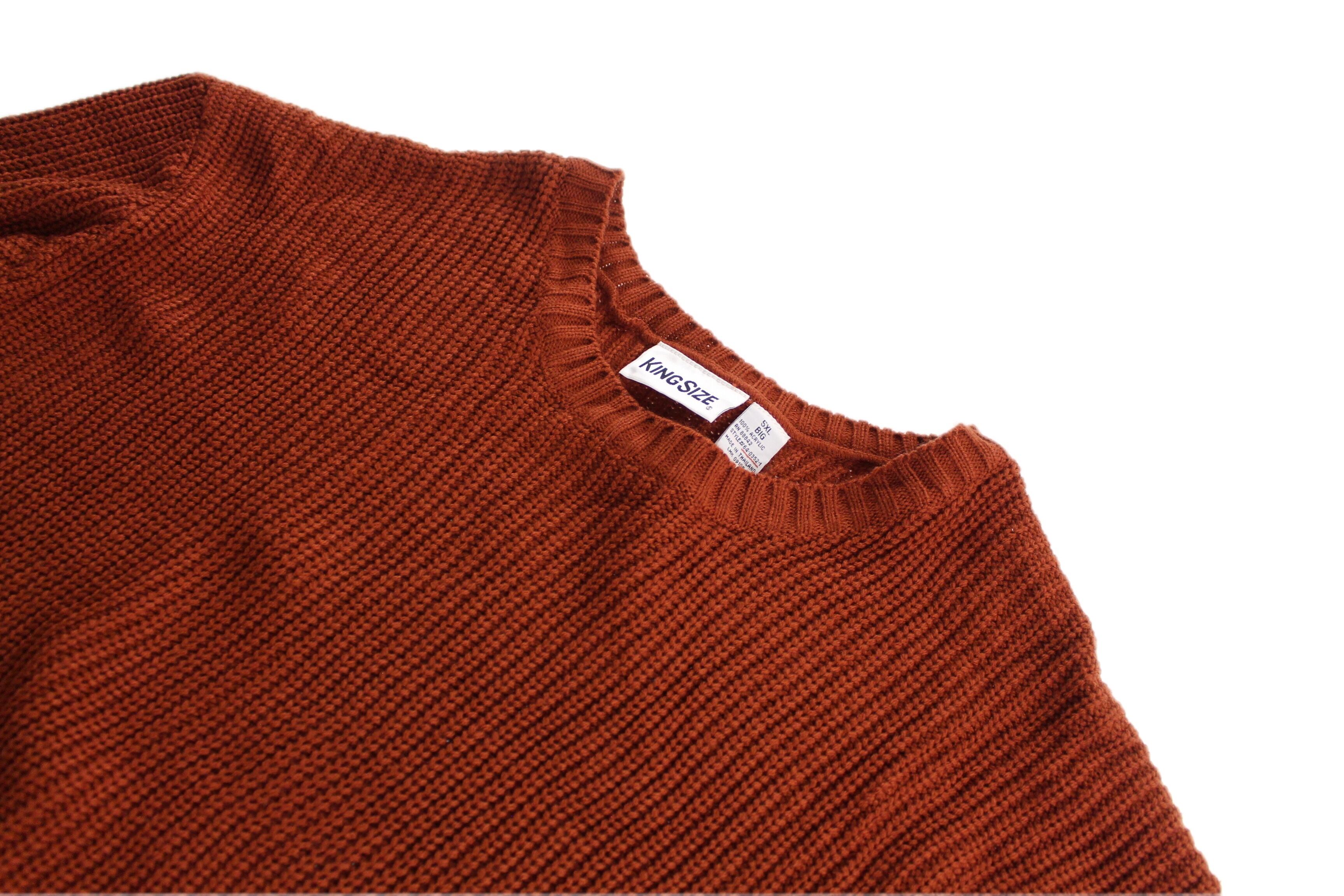 アクリル100%のチクチクすることなく肌馴染みの良いファブリックに5XLの規格外サイズ。サイズの割に重さは一切なく独特のオチ感を楽しめるこのブランドならではの良いニット。