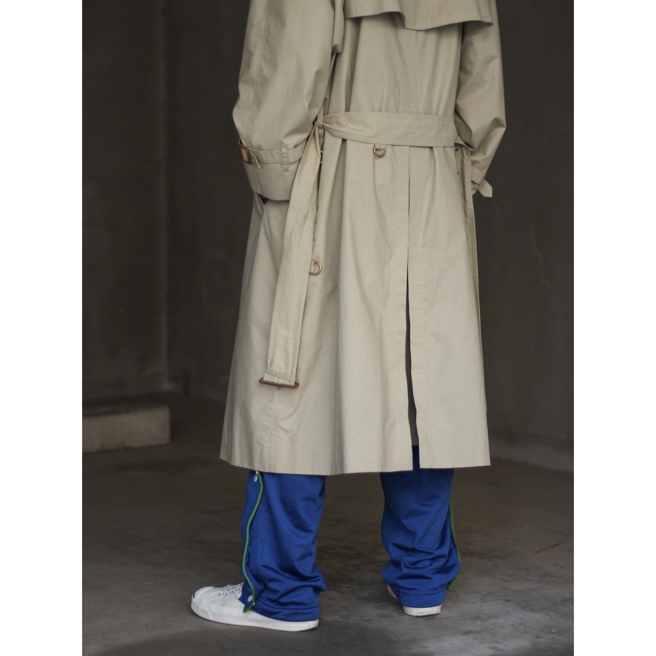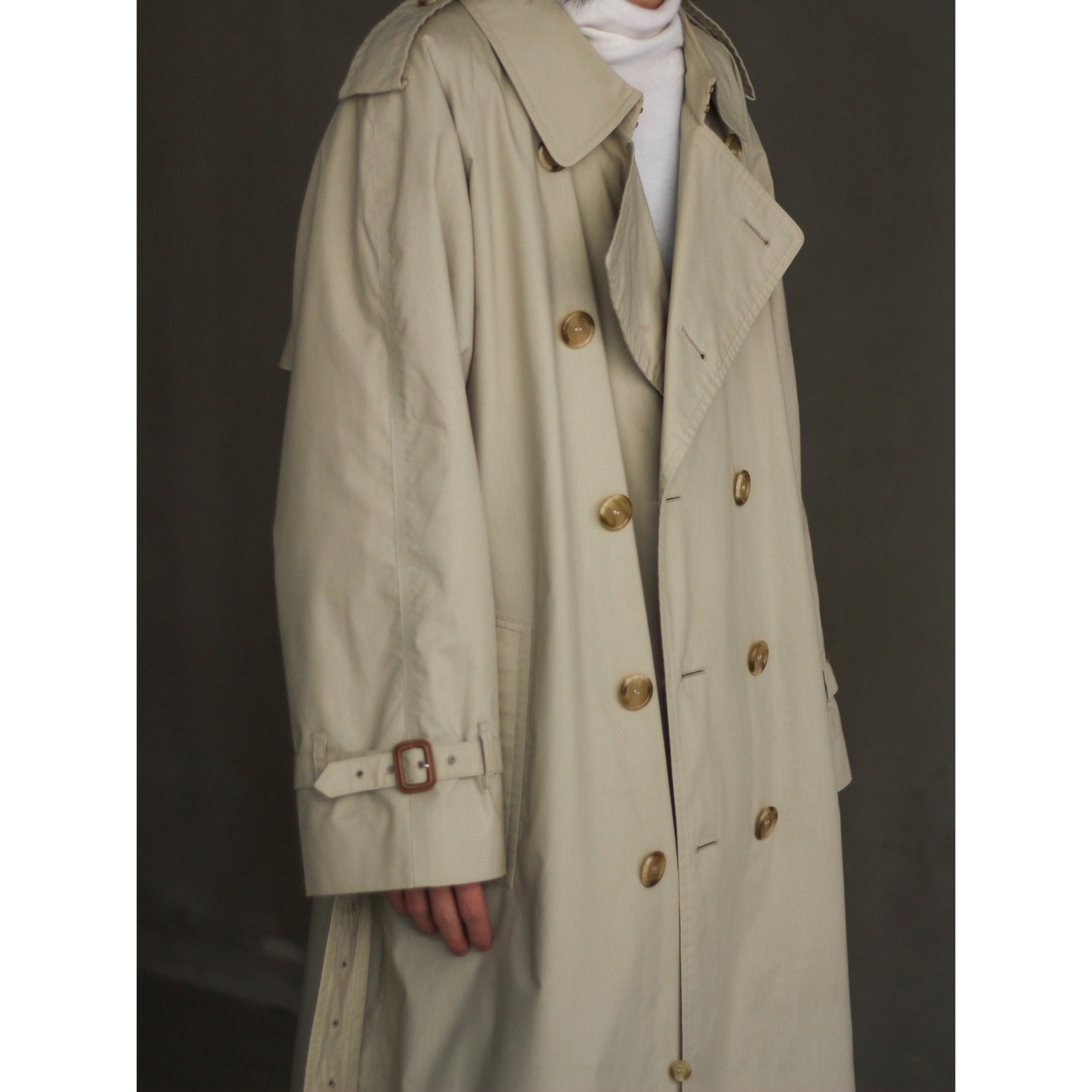カタチもこのブランドならではな、ダブル仕様のトレンチコートスタイルです。