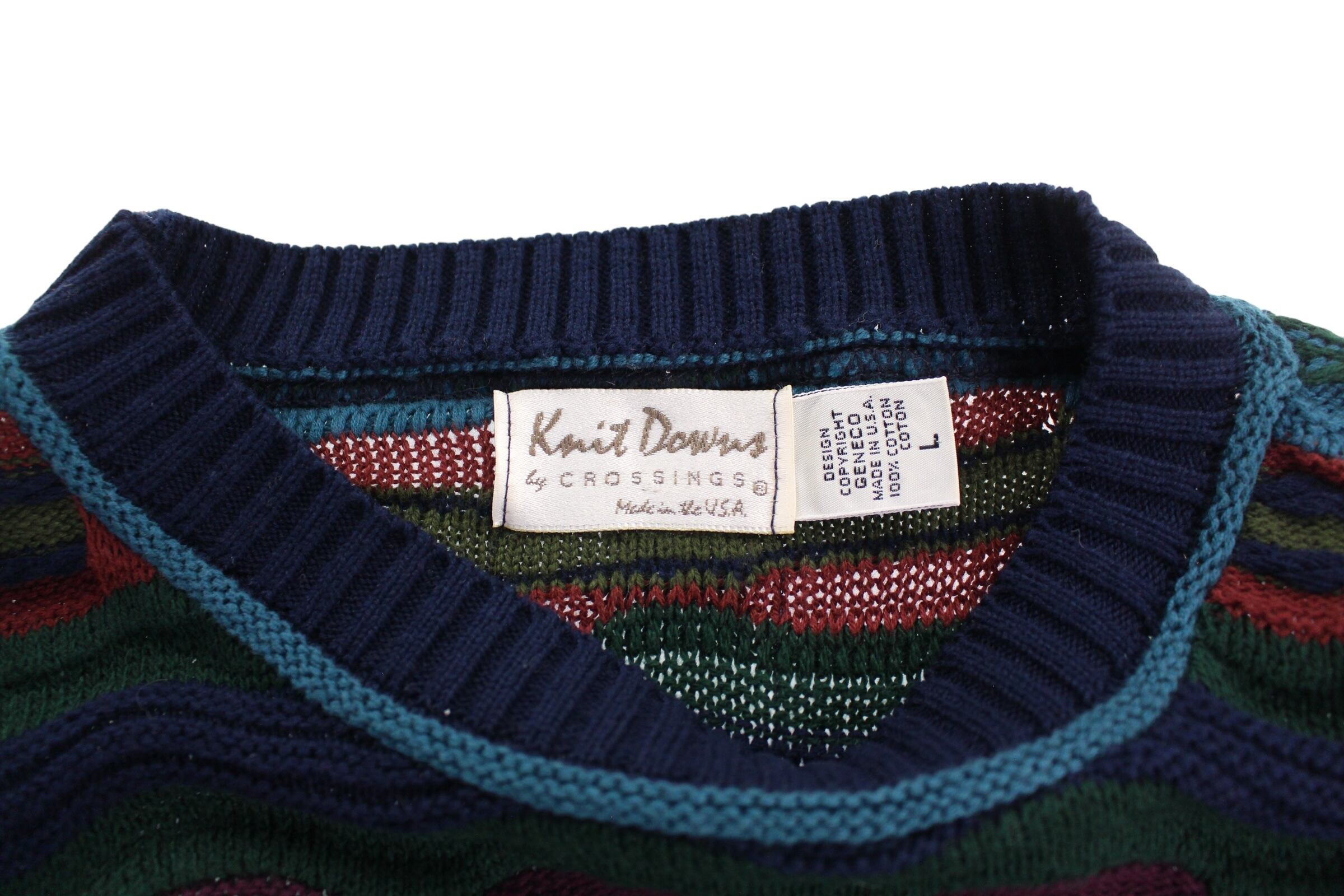 1980's vintage cotton three dimensions contemporary pattern knit sweater made in usa