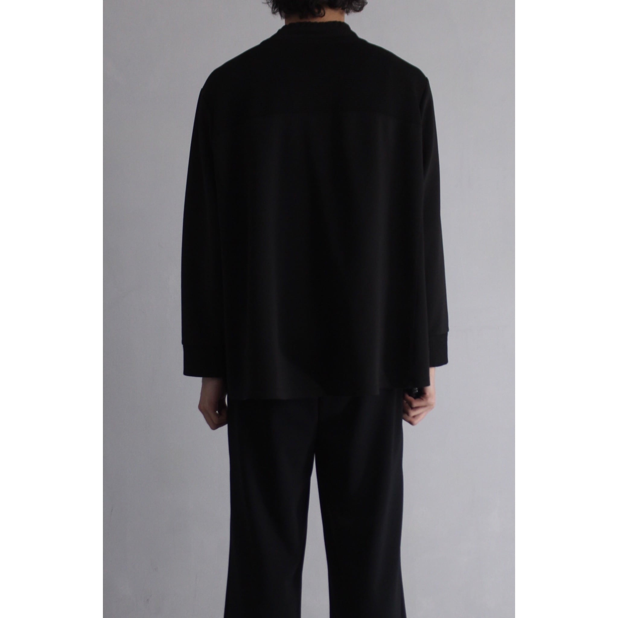 まるでパーカーのフード部分をぶった斬ったような斬新なアイテム。フードがないだけでこんなにモードになるなんて、、